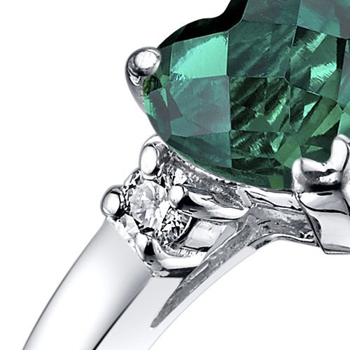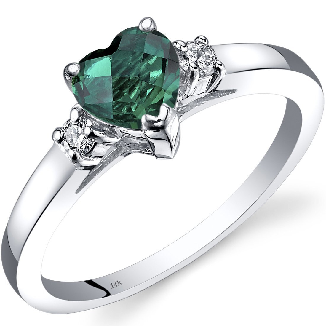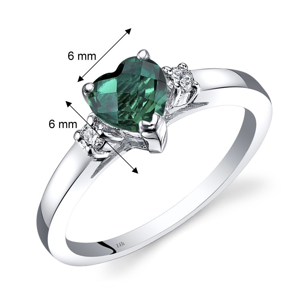 This classic and timeless ring features a heart shape Peora created Emerald gemstone in 14K white gold.