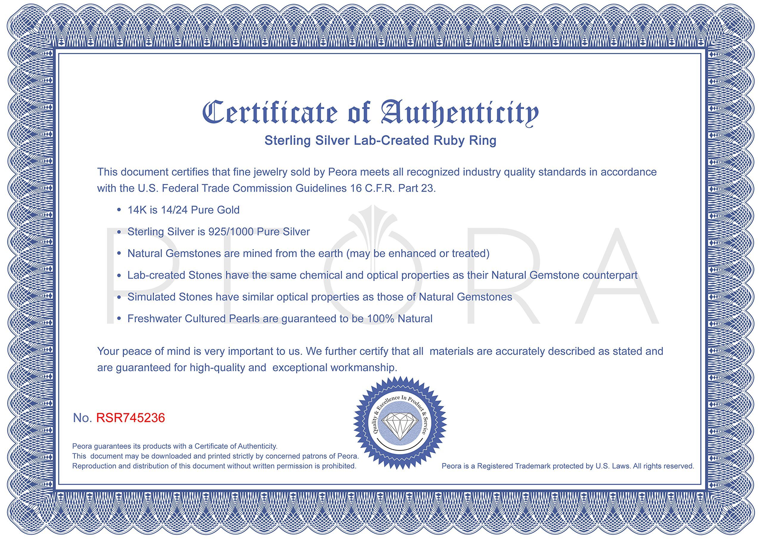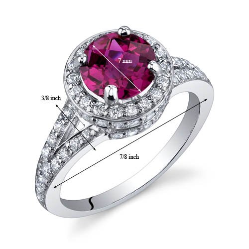 Peora Created Ruby Ring 1.75 Carat Sterling Silver Rhodium Plated Size 5 Red Sto