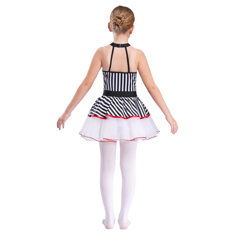 Halter dress with contrast stripes looks stylish, elastic waist better fit your child’s body shape.