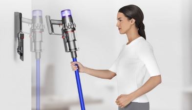 Neatly stores and chargesThe Dyson V11 vacuum drops into the wall-mounted dock, to charge it and tidily store tools. So it's ready to grab and go.