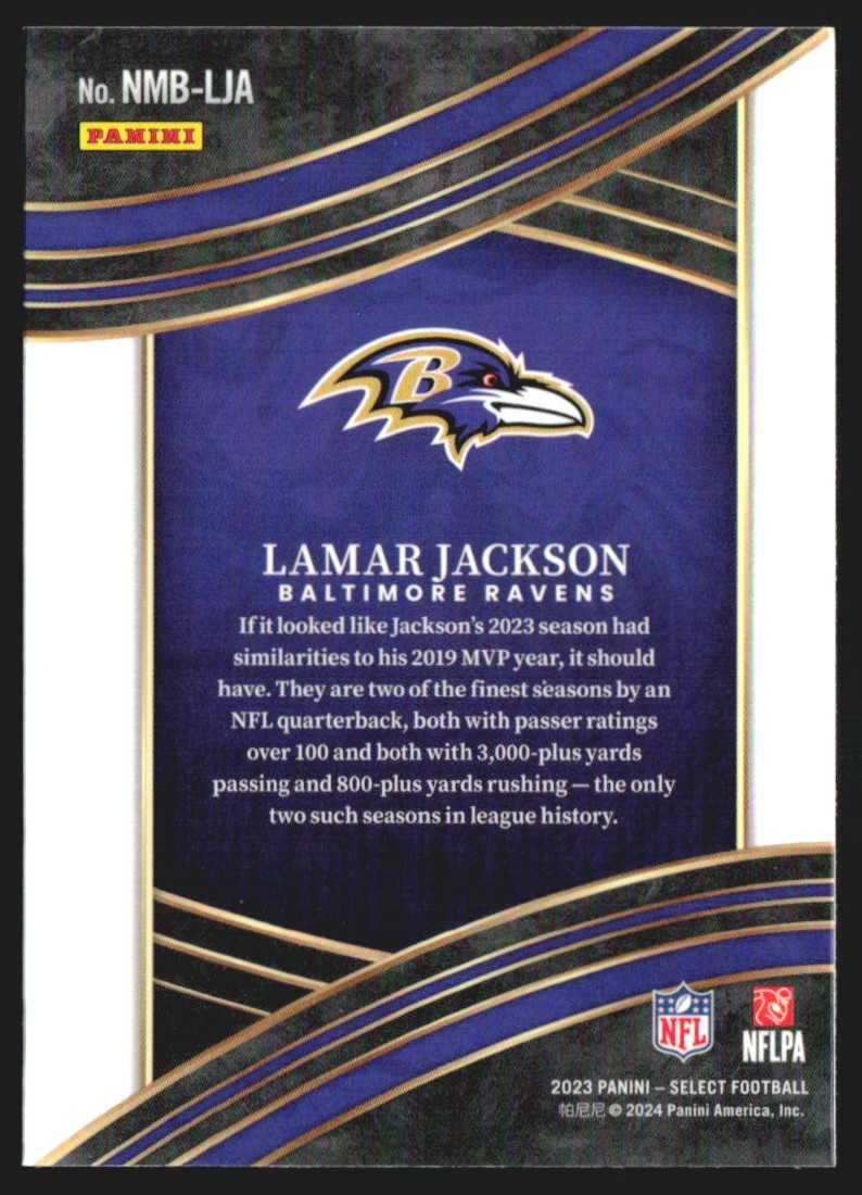 | 2023 Panini Select Numbers Lamar Jackson #NMB-LJA JW1 |