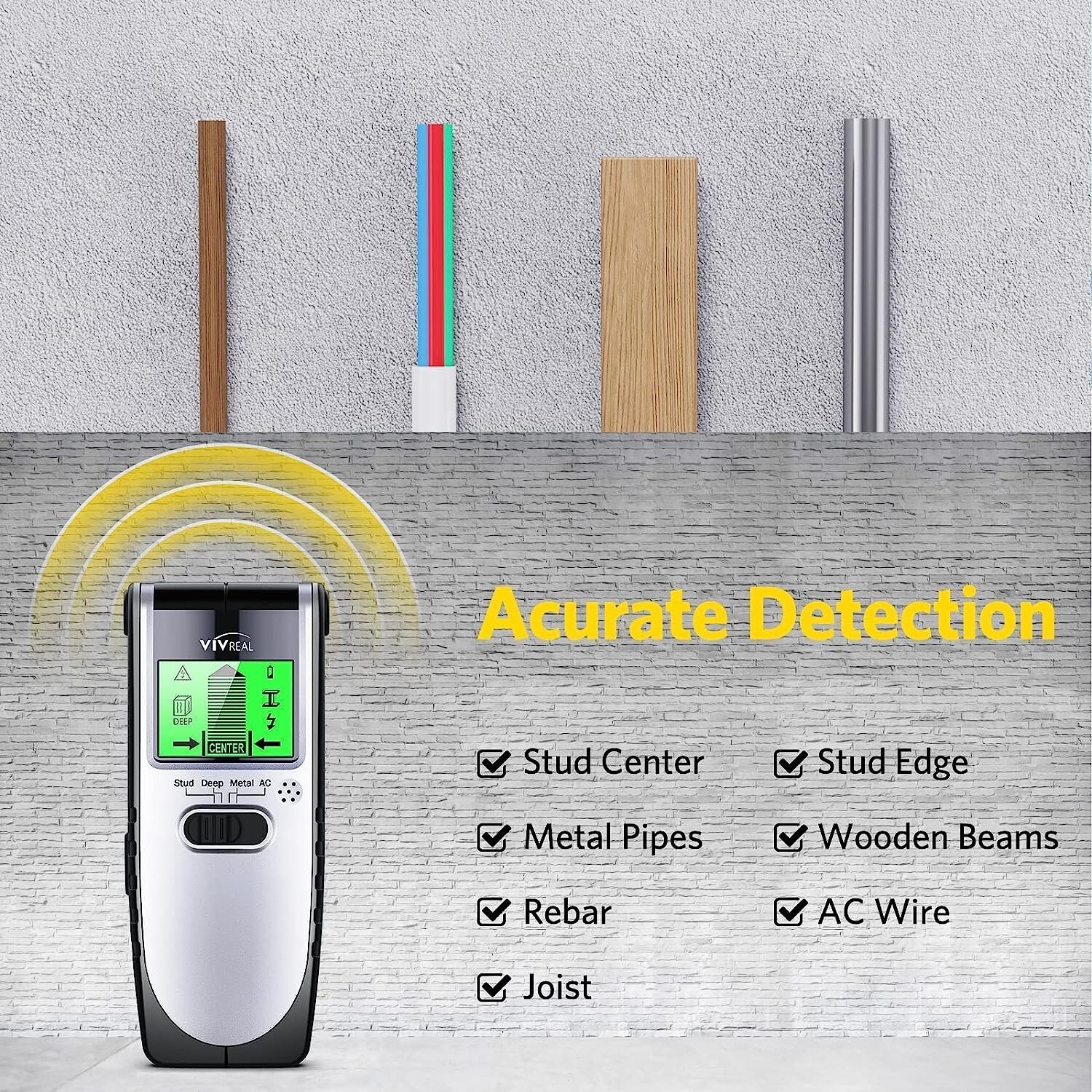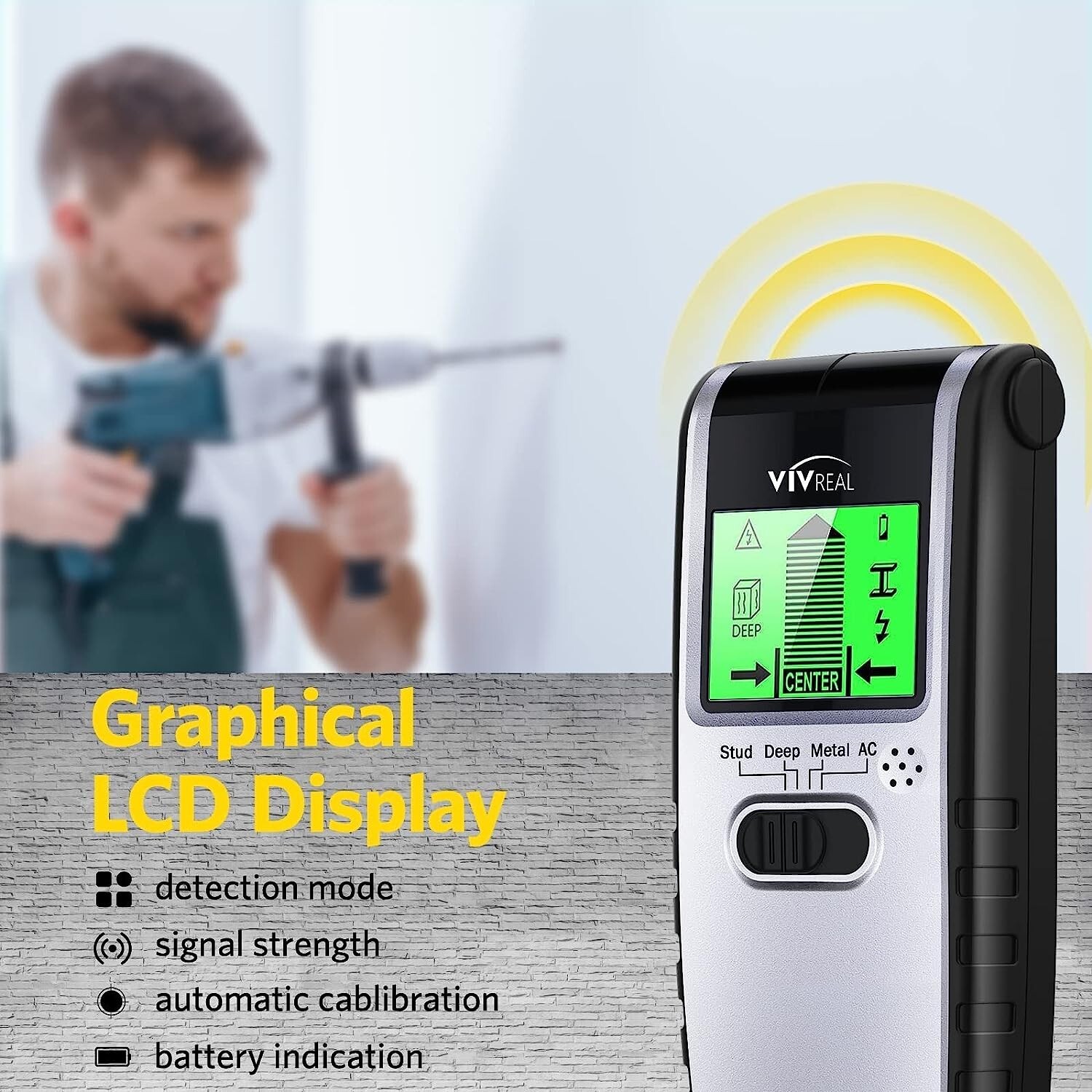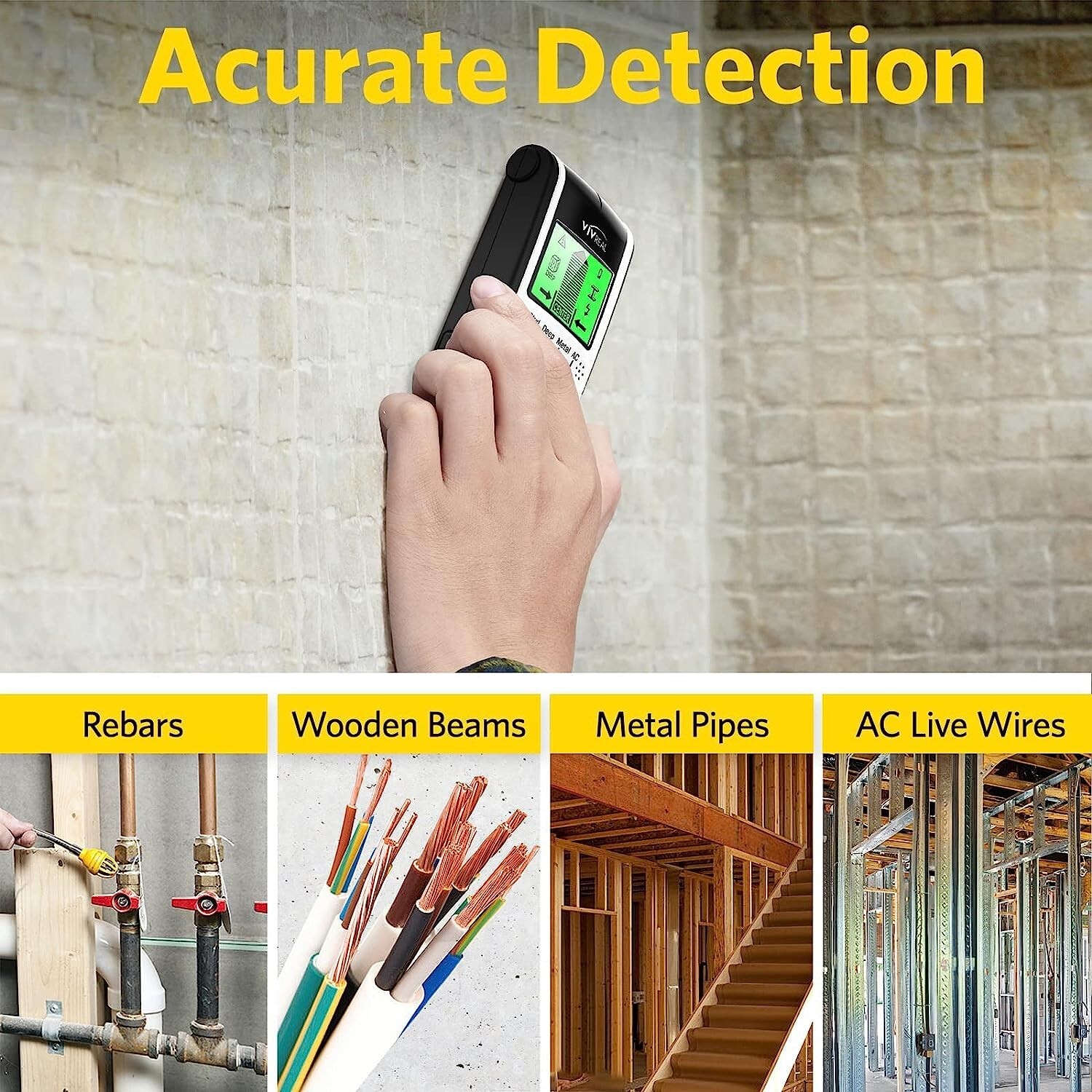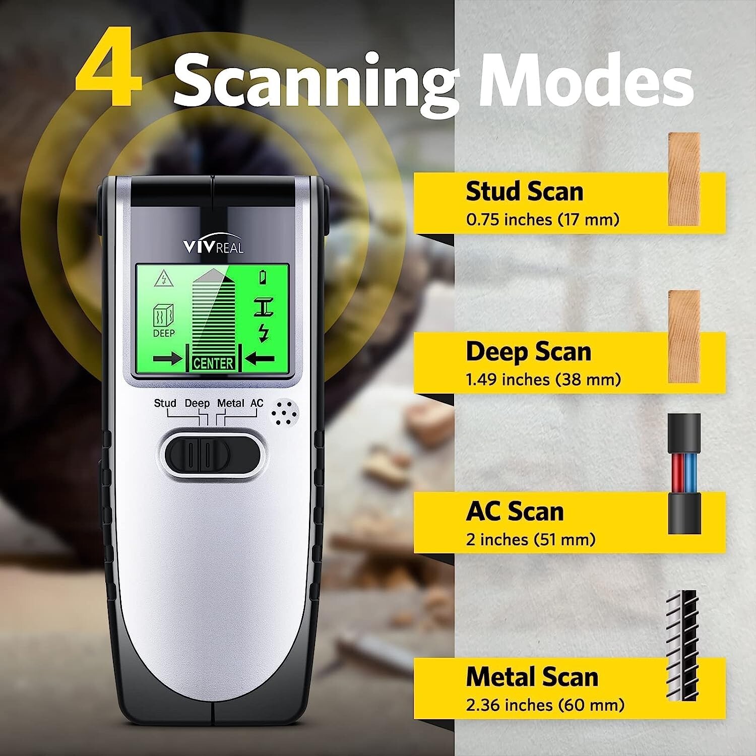 VIVREAL-TH240 Stud Finder Sensor Wall Scanner, 4 in 1 Electric Wall Detector with LCD Display, 4 Scanning Modes, Sound Warning, Beam Wall Scanner for The Center and Edge of Wood AC Wire Metal