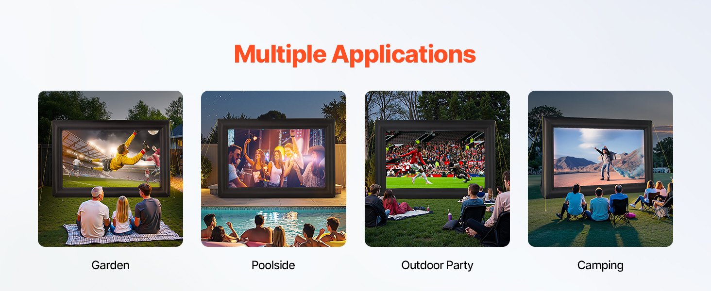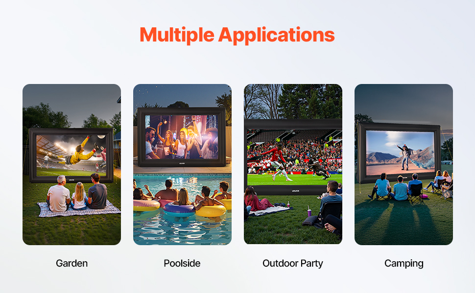 Expansive Viewing Angle: With its wide-angle design, our inflatable screen allows multiple people to enjoy movie nights simultaneously. No matter where you sit, you can easily enjoy a wide viewing angle, immersing yourself in a comprehensive audio-visual experience!
