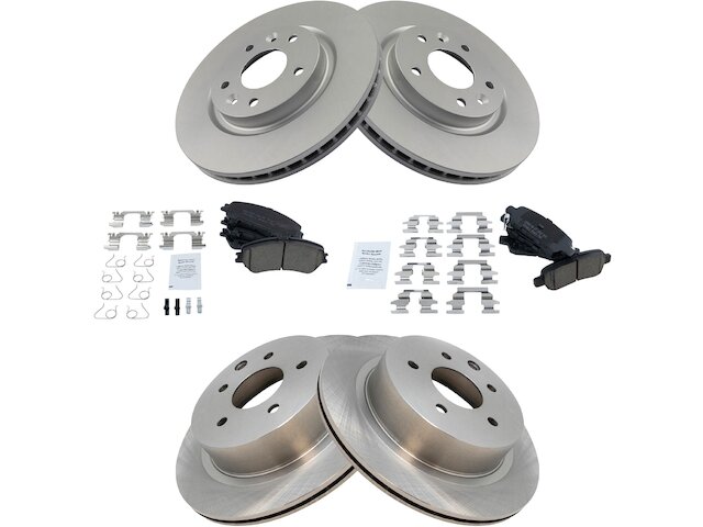 Package Contents: (1) Front Ceramic Brake Pad Set; (1) Rear Ceramic Brake Pad Set; (2) Front Premium G-Coated Brake Rotors; (2) Rear Premium G-Coated Brake Rotors