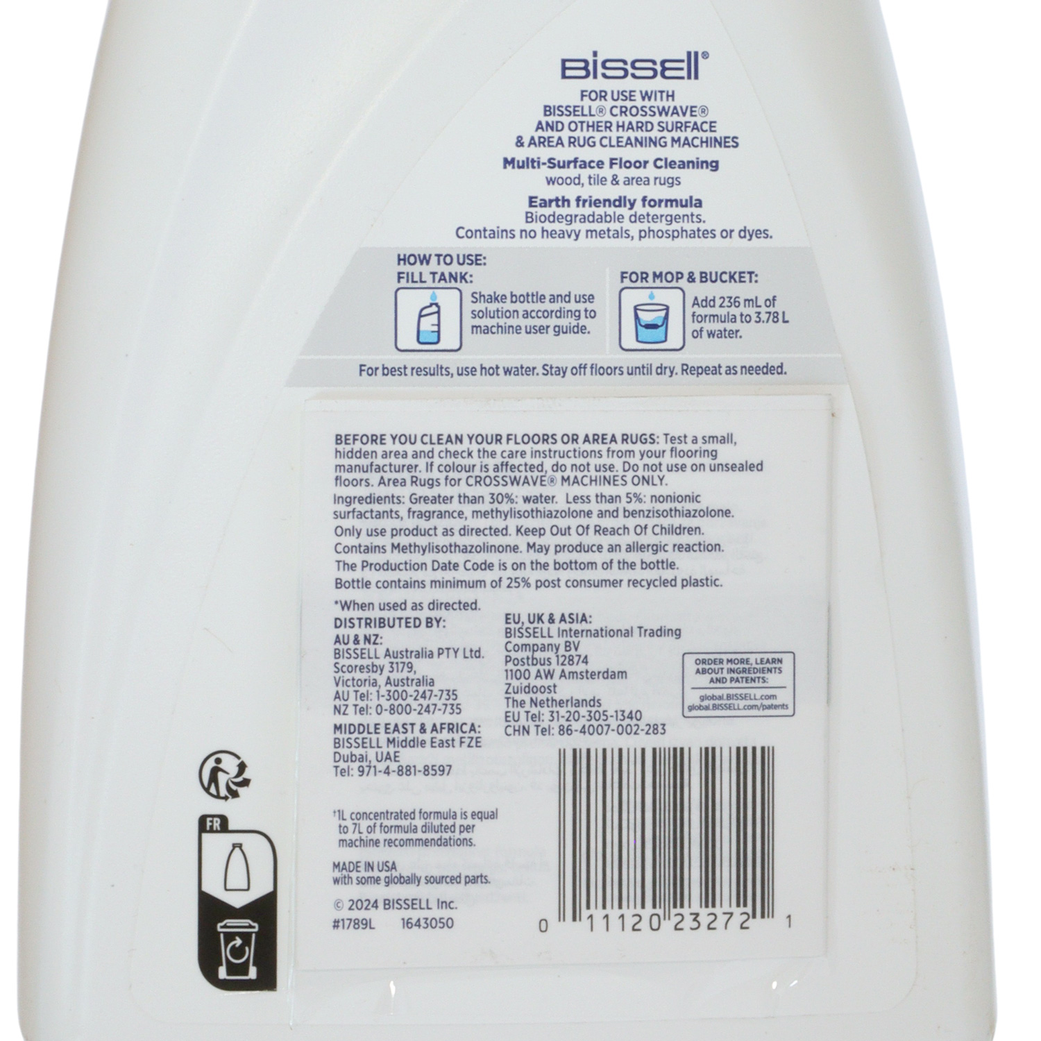 Achieve a fresh, spotless clean across all your hard floors with the Bissell Multi-Surface Floor Cleaning Solution in Spring Breeze scent. This 1-litre bottle is perfect for regular use and is specially formulated for Bissell CrossWave, SpinWave, and HydroWave floor cleaners. Designed for sealed wood, tile, laminate, vinyl, and area rugs, it lifts dirt and grime while leaving behind a light, refreshing floral fragrance.