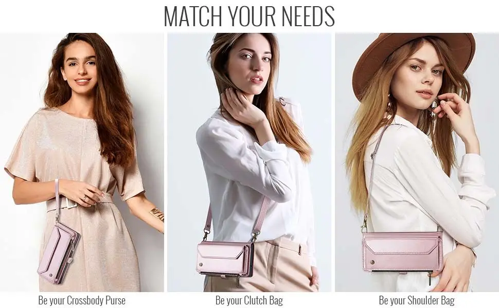 3.【Universal RFID Lock Wallet Design】: Multifunctional clutch case + phone case in one with RFID lock function. The folio flip with mini buttons includes a card holder, a zip pocket, and part of the phone case. The all-in-one design allows you to carry this case outdoors without carrying a bulky wallet, suitable for women and men. He will be your ideal partner when you go shopping, for a walk, on a business trip, on a short trip or to work.