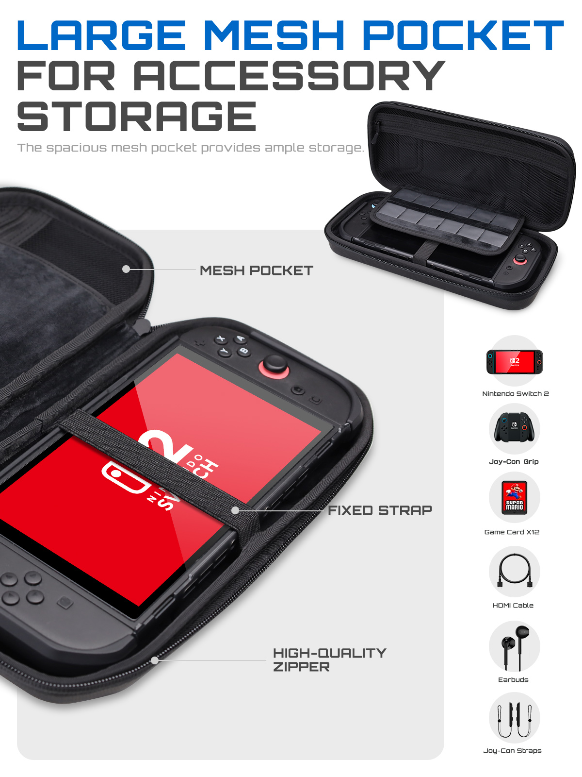 SUPCASE for Nintendo Switch 2 Carrying Case 2025, [12 Game Card Storage] [Military-Grade Protection] Spacious Portable Hard Shell Travel Bag for Nintendo Switch 2 Console & Accessories