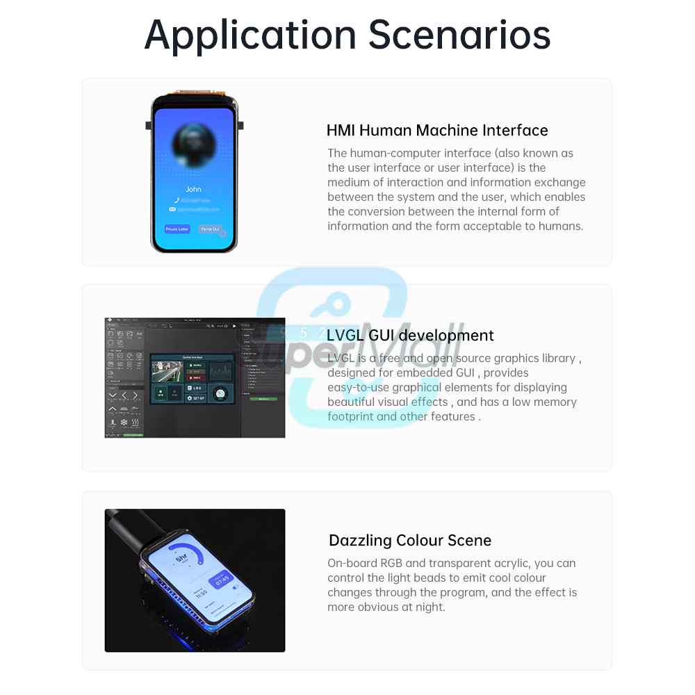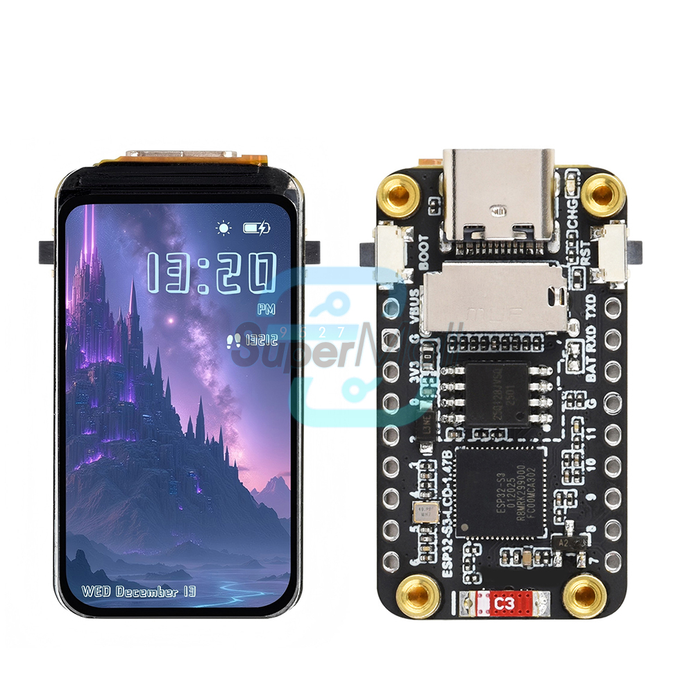 This product is a microcontroller development board supporting 2.4GHz Wi-Fi and Bluetooth BLE 5. It integrates high-capacity Flash and PSRAM, and has a 1.47-inch LCD screen on board, which can smoothly run GUI interface programs such as LVGL, and combined with a variety of peripheral interfaces, it can quickly develop HMI applications for ESP32-S3.