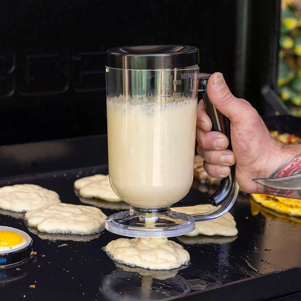 • Includes: pancake dispenser, 2 egg molds, omelet mold, and grub shovel with bottle opener