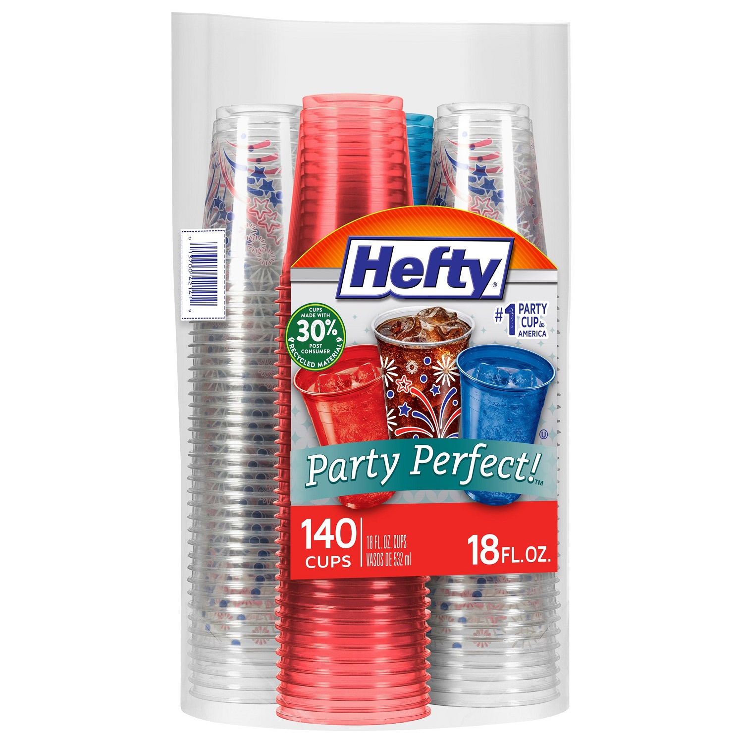 - Multicolor - 18 fluid ounce Plastic Cups - 140 Total Cups - Made with 30% post consumer recycled material - Party perfect