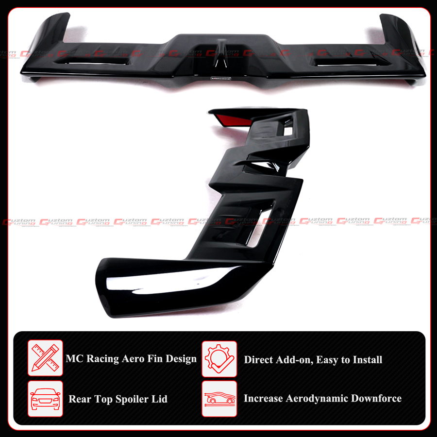 - Direct Add-On Rear Roof Spoiler With Special Aero Fin Design. It Also Comes With Brand Decal at The Back of The Spoiler.