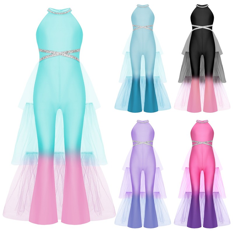 Kids Girl Arabian Costume Patchwork Flying Sleeve Rhinestone Sequins Tassels