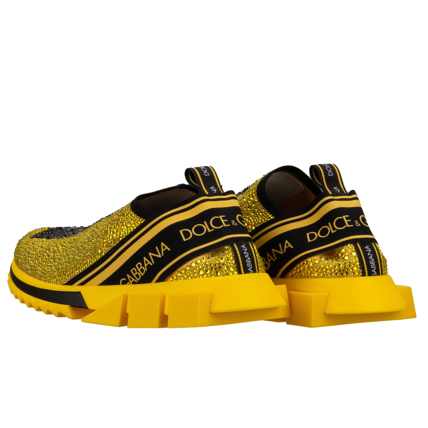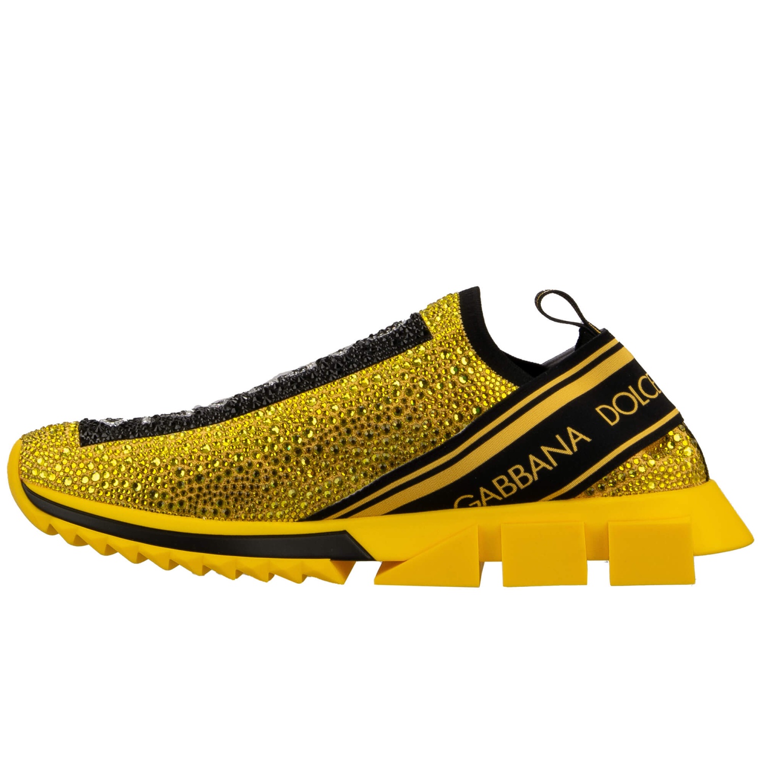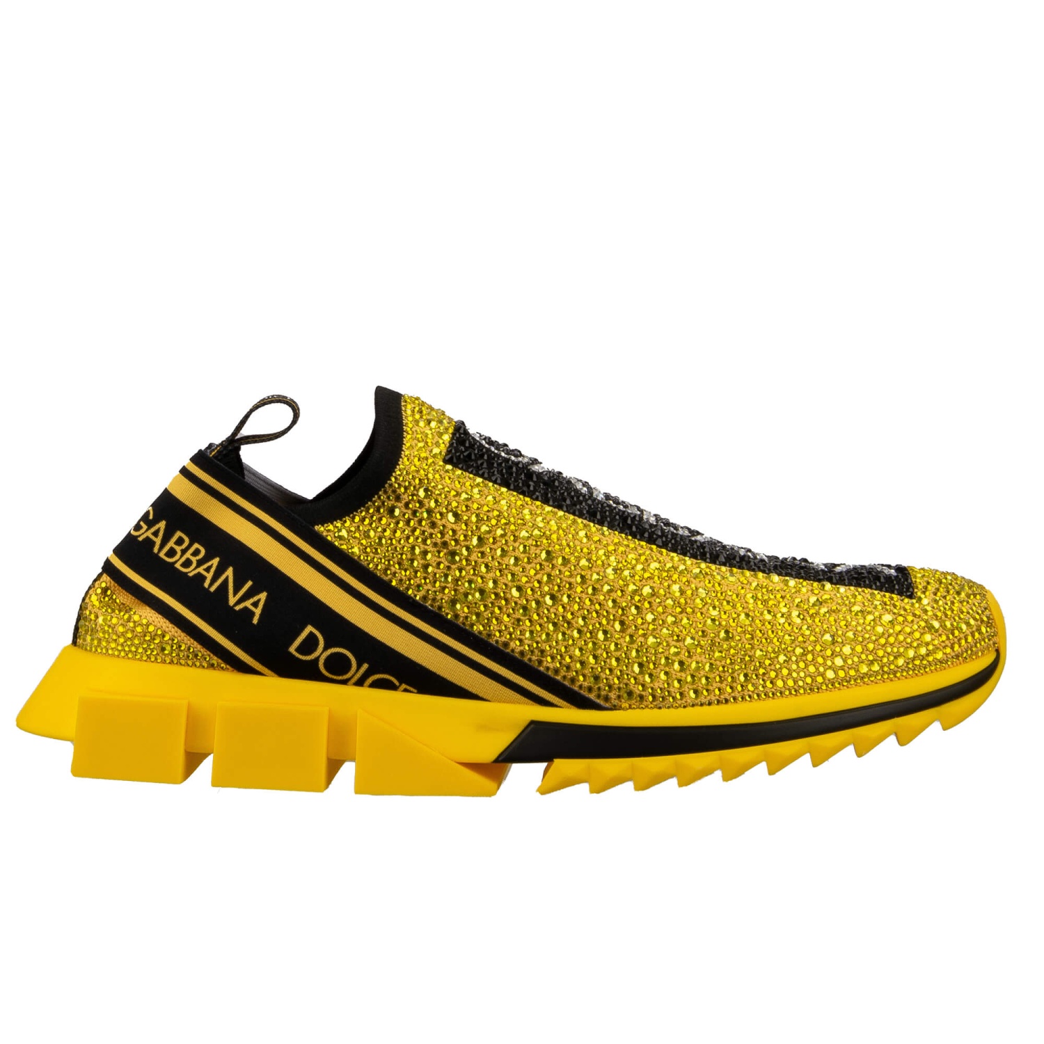 - Baskets à enfiler élastiques SORRENTO pour homme avec cristaux et rayures logo DG en jaune et noir par DOLCE & GABBANA
