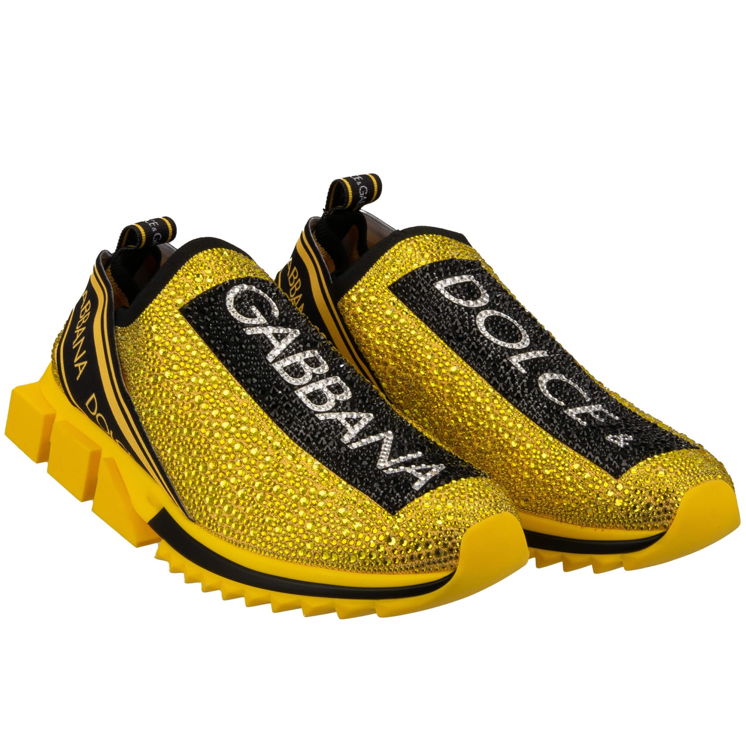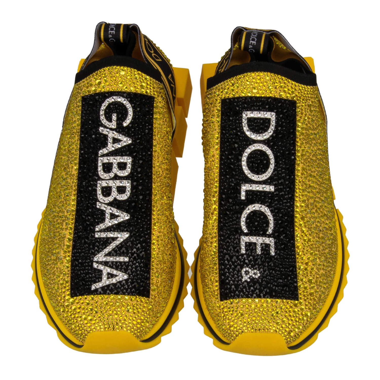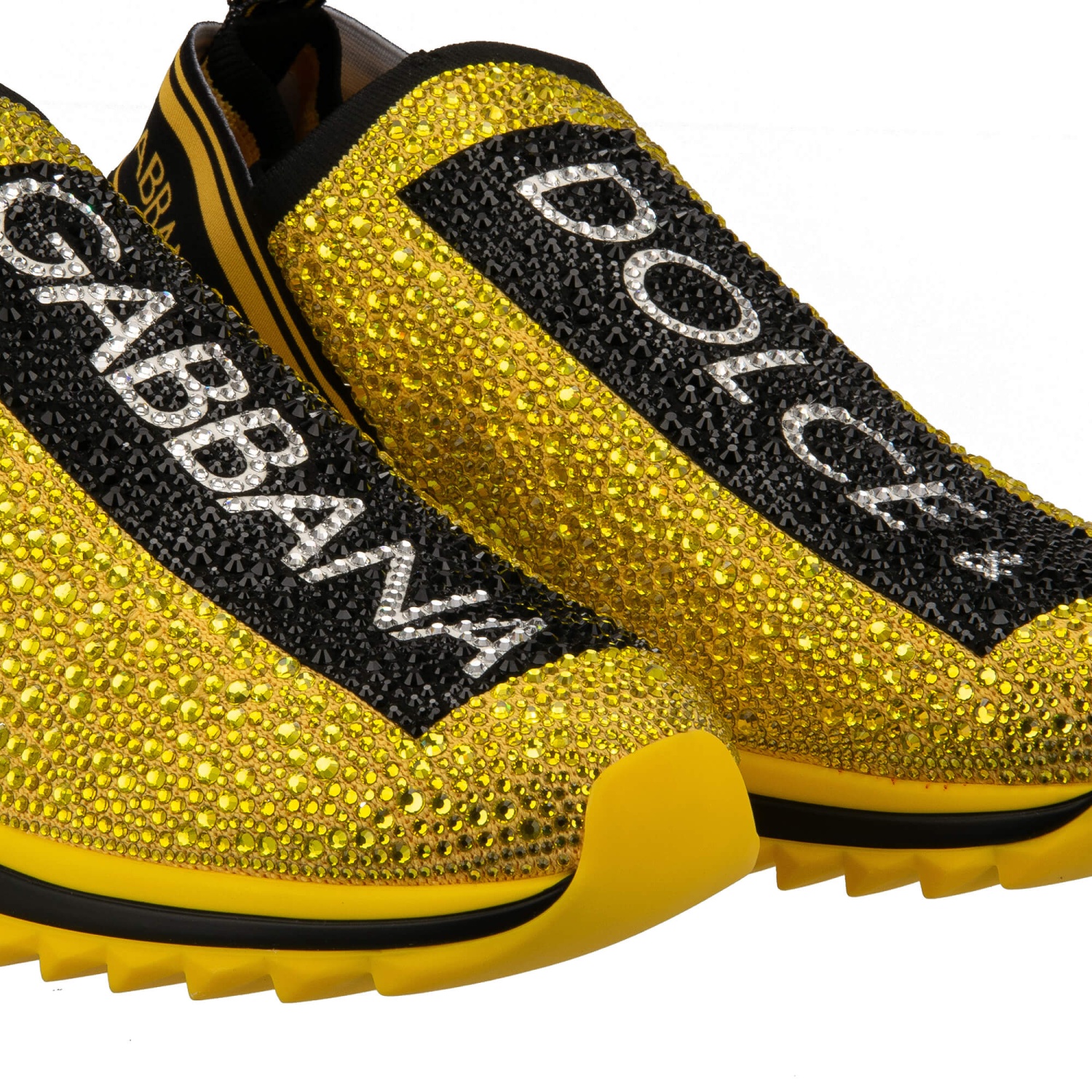 - Baskets à enfiler élastiques SORRENTO pour homme avec cristaux et rayures logo DG en jaune et noir par DOLCE & GABBANA