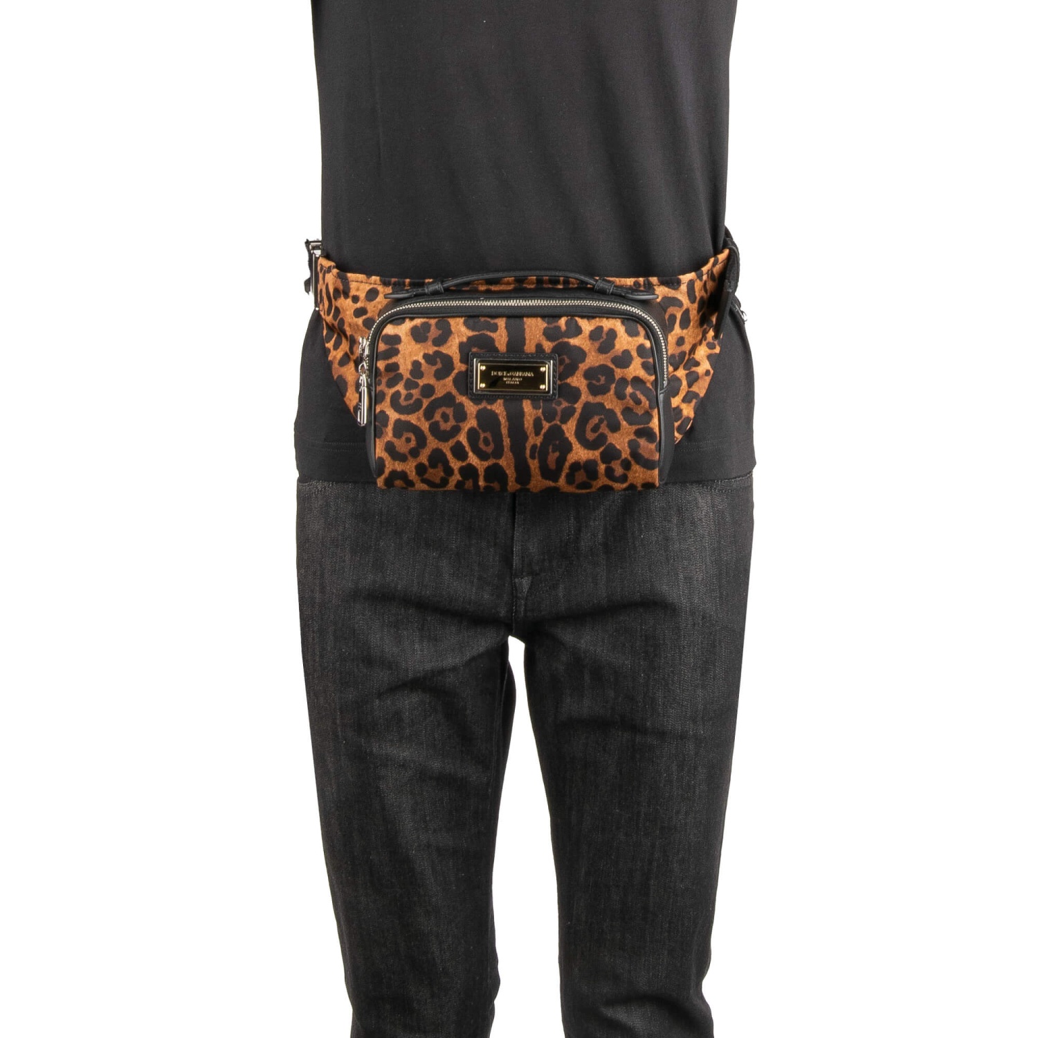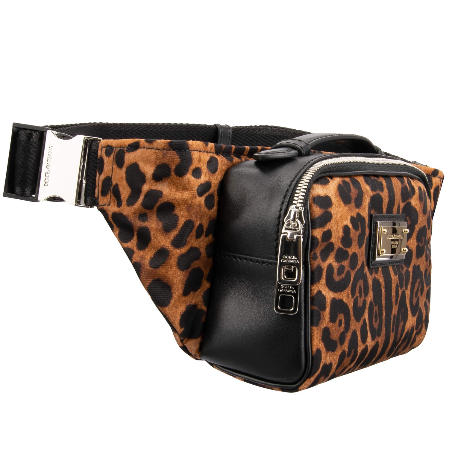 - Marsupio con stampa leopardata realizzato in nylon e pelle con scudo in metallo con logo DG di DOLCE & GABBANA