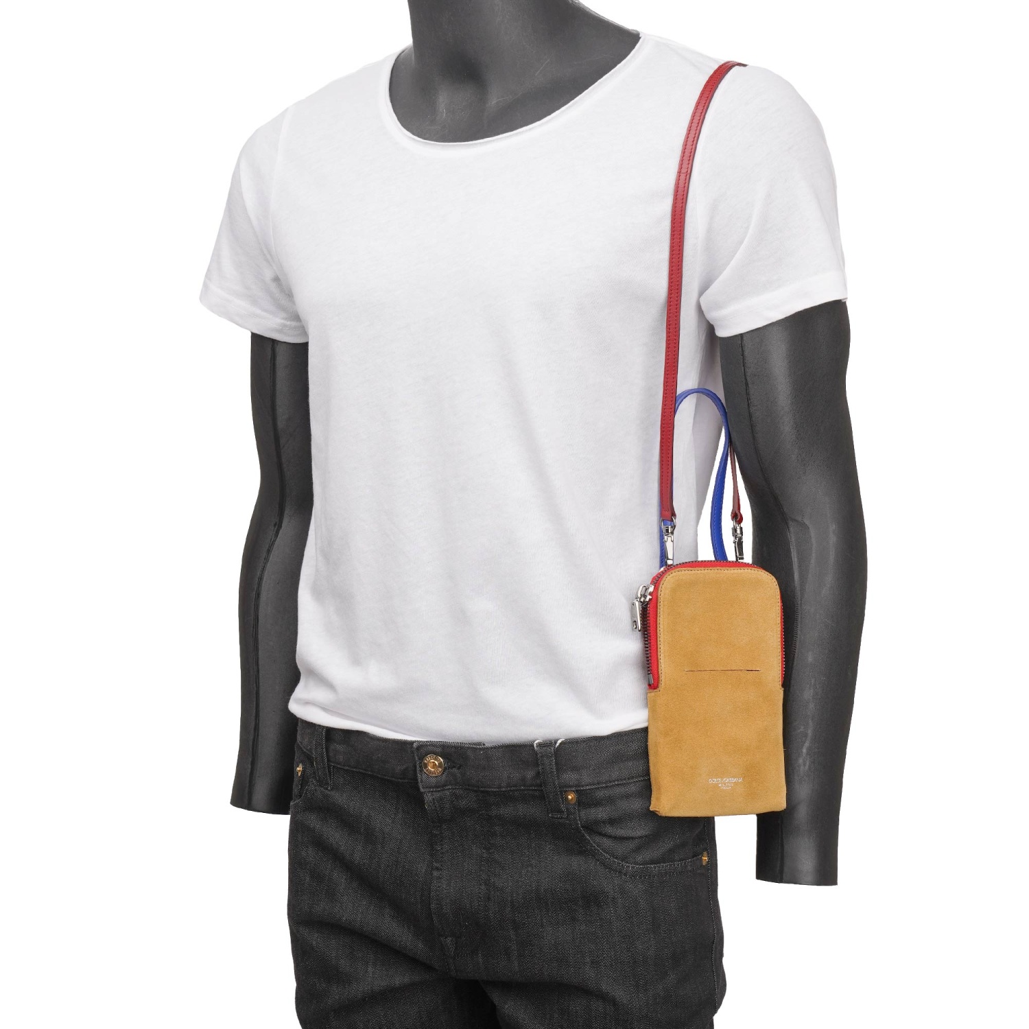 - Sac à bandoulière de téléphone portable à téléphone portable unisexe en daim avec bandoulière amovible en beige de DOLCE & GABBANA
