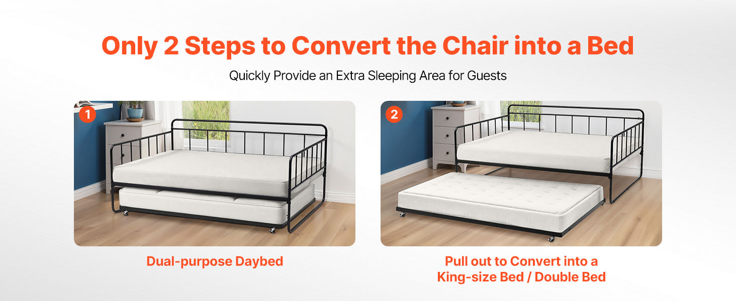 Wide Applications: This multifunctional daybed is suitable for various scenarios, meeting a variety of temporary sleeping needs. It can serve as a spare bed for guests or be used in small apartments and tight spaces, providing versatile seating and sleeping options