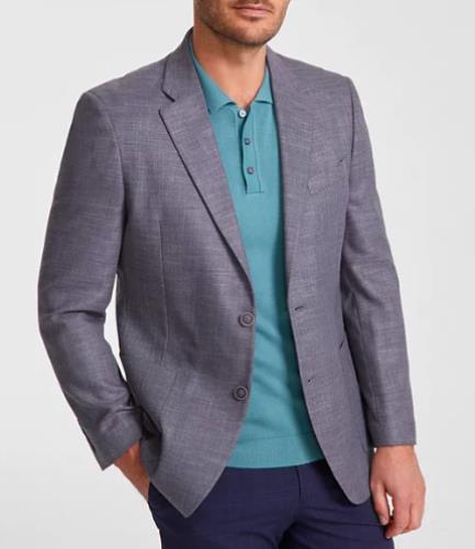 Textural stretch fabric and patch pockets balance enduring comfort and casual style on this handsome tailored sport coat by Nautica. Notched lapel, Imported, Two-button closure; four-button cuffs, Two open patch pockets; left chest welt pocket; internal pockets, Modern fit features an athletic fit through the shoulders, chest and waist with higher armholes and trimmer sleeves, Dry clean, Shell: polyester/rayon/linen/spandex; lining: polyester