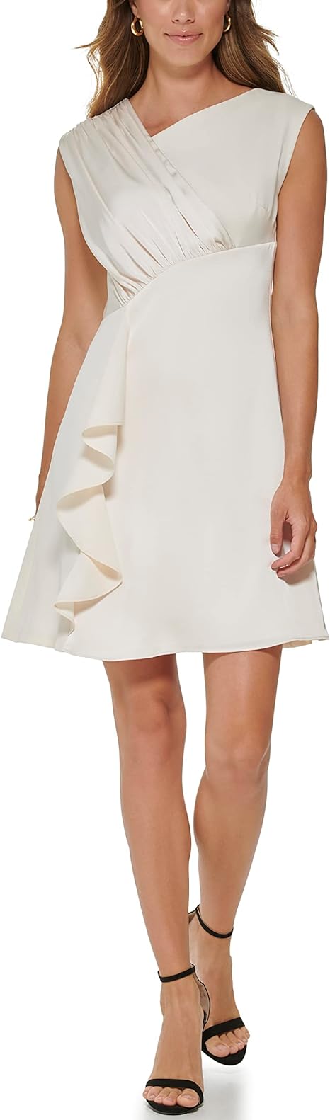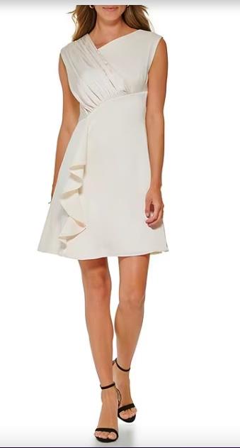 DKNY Asymmetrical Neck Sleeveless Cascade Ruffle A-Line Dress 14 NEW DD2K2383