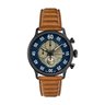 Black stainless steel case.Brown leather strap.Quartz movement.Chronograph.Date.Sapphire crystal.Blue dial.Water Resistant 50m/165 Feet.Case 44 mm.