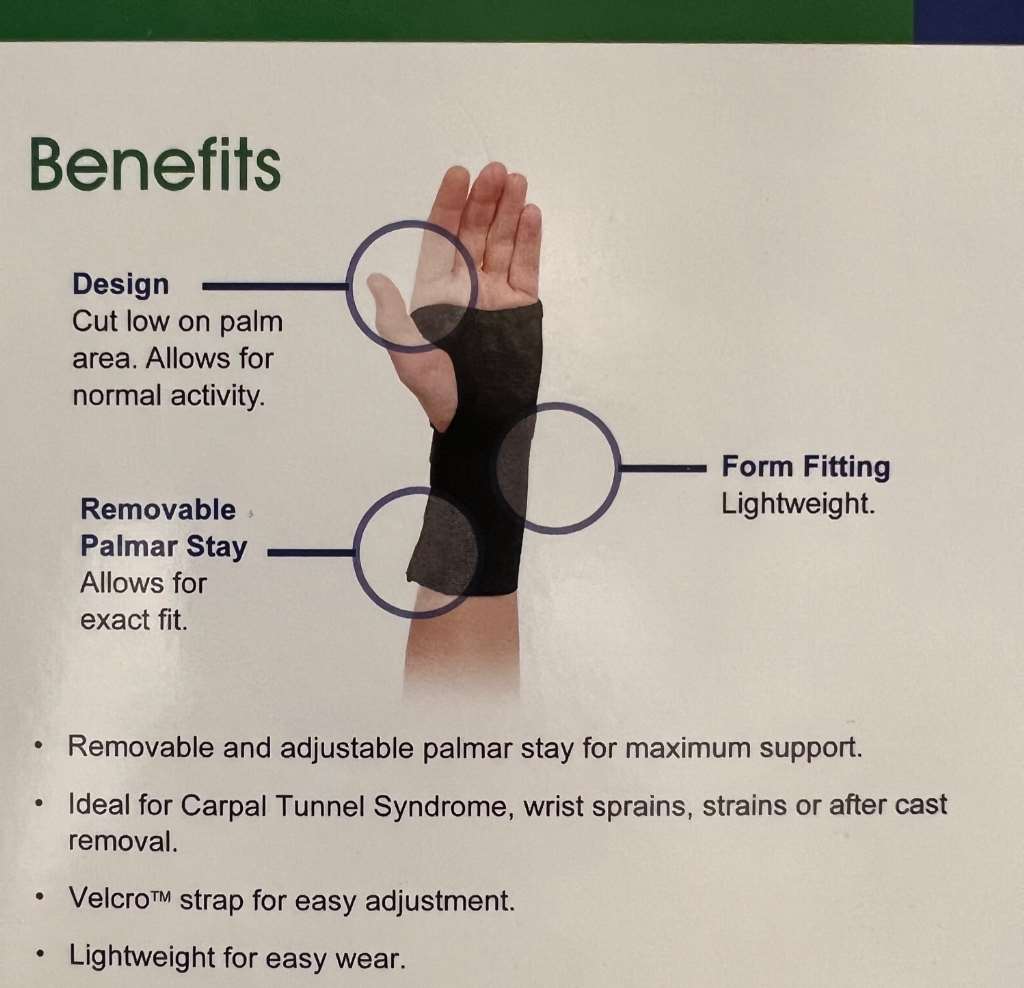 Carpal tunnel syndrome, sprains, strains, tendonitis, wrist immobilization and post cast healing.