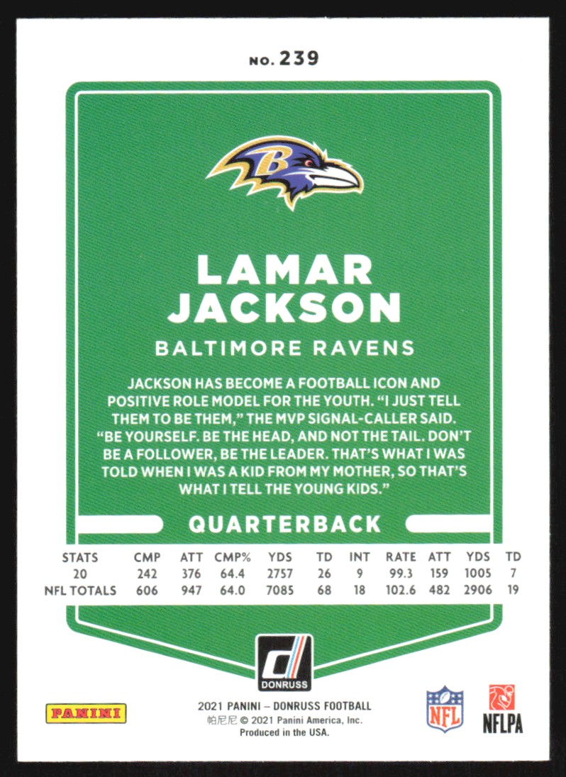 2021 Donruss Lamar Jackson #239 Baltimore Ravens
