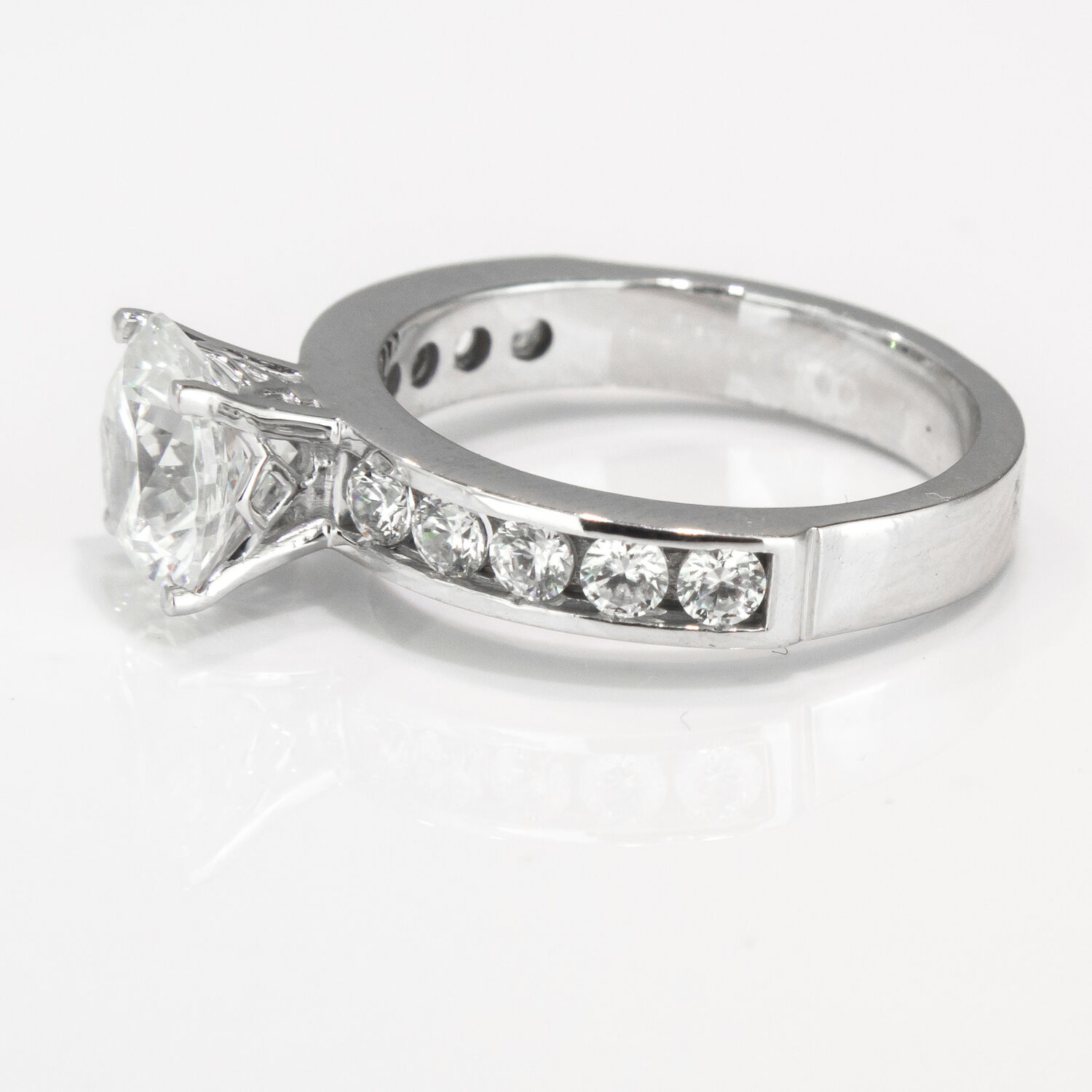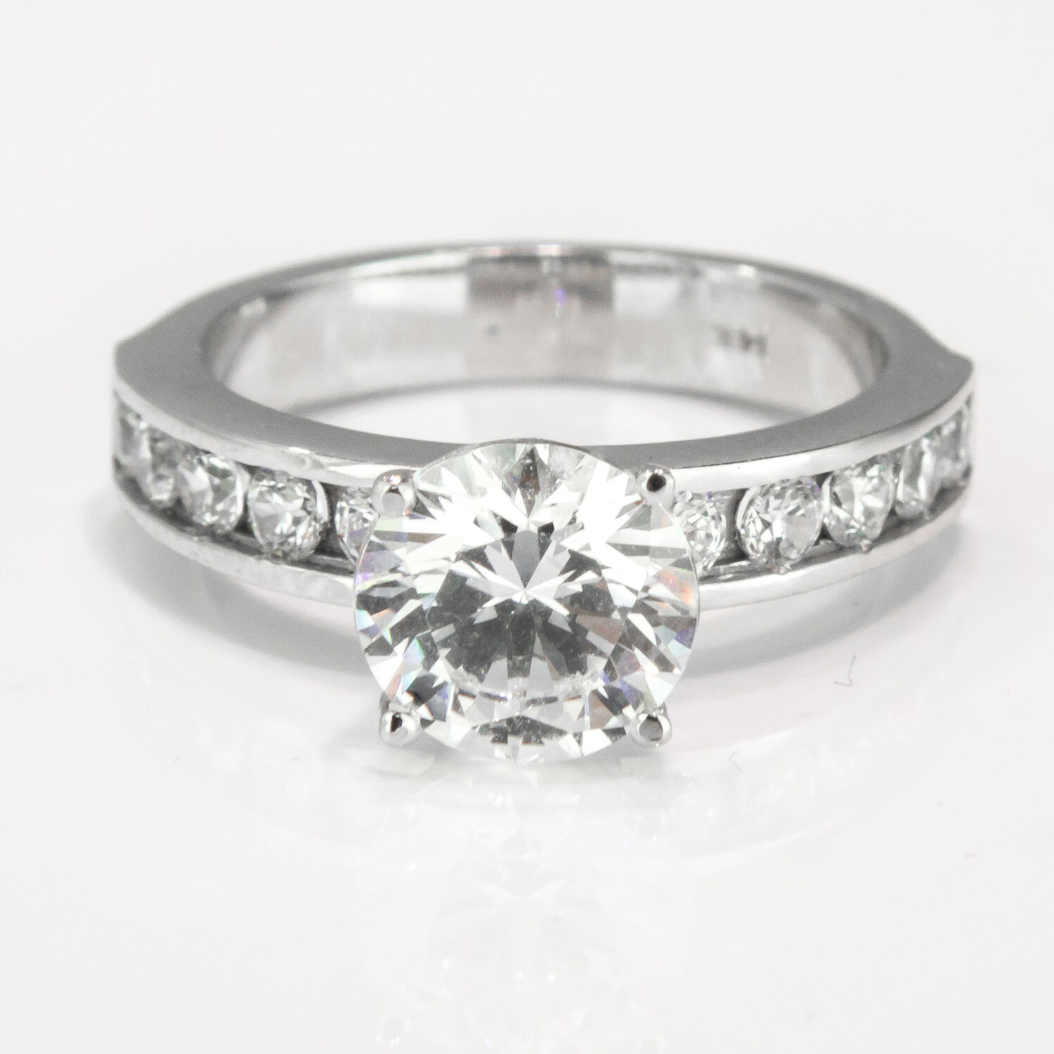 Diamond Ring Sidestones 1.57CTW (Center Stone 0.87ct) in 18K White Gold. Free Shipping - 30 Day Returns - Appraisal Certificate Included. This beautifully designed diamond ring has been meticulously crafted to perfection. Exclusively designed by the Brillianteers Diamond Studio guaranteeing its quality and excellence. Each stone is hand picked and inspected making sure that it has the ultimate sparkle and brilliance. Our unique classic designs will be sure to draw compliments anywhere you go and will be cherished for a lifetime.