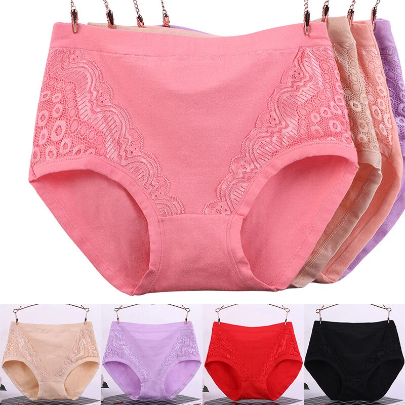 Womens High Waist Cotton Knickers Briefs Plus Size Underwear Panties Underpants
