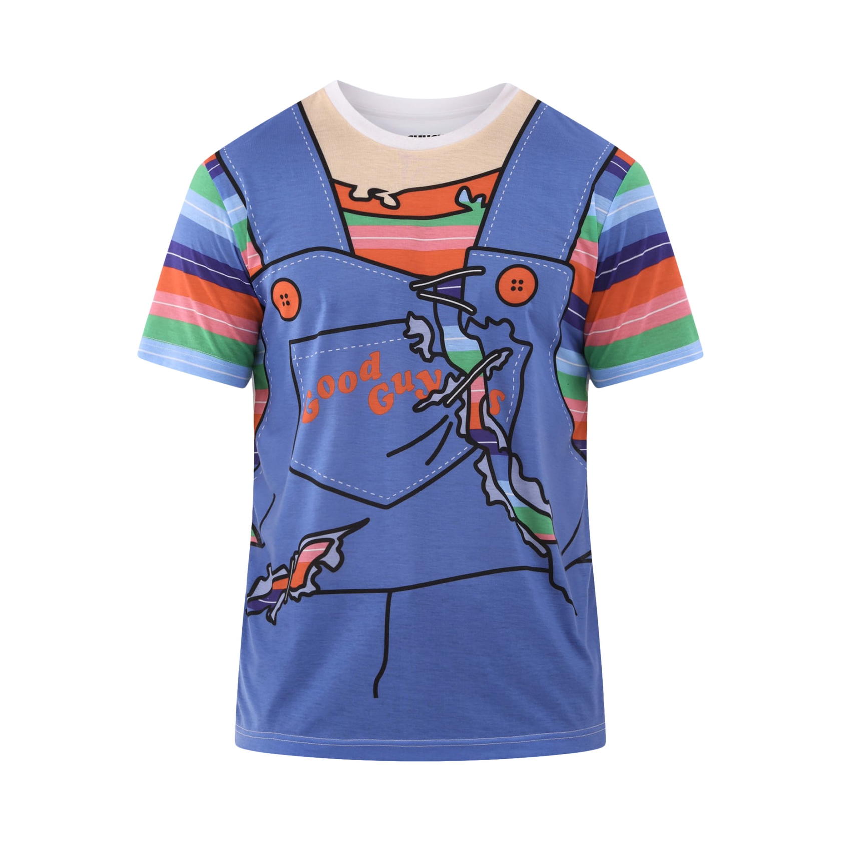 Hi, I’m Chucky! Wanna trick-or-treat? Celebrate Halloween with this Chucky Men's Graphic Costume Tee, featuring contrast prints inspired by iconic character. This Chucky costume T-shirt stands out, adding a spooky touch to the festivities during the Halloween season and is crafted in cotton blend with a relaxed, comfortable fit. Pair it with your jeans and sneakers for an easy-wearing Halloween outfit that has you ready for the next party.