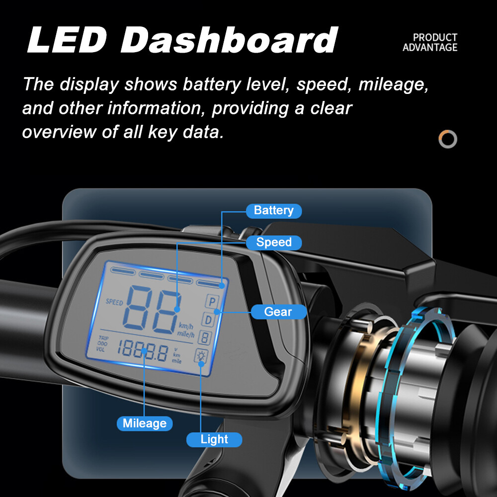 Quickly check speed, battery level, and riding mode at a glance.