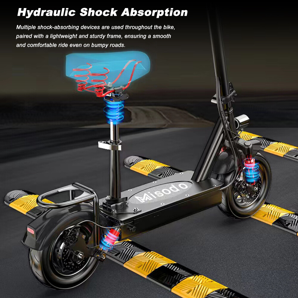 Front and rear suspension absorbs bumps for a smoother, more comfortable ride.