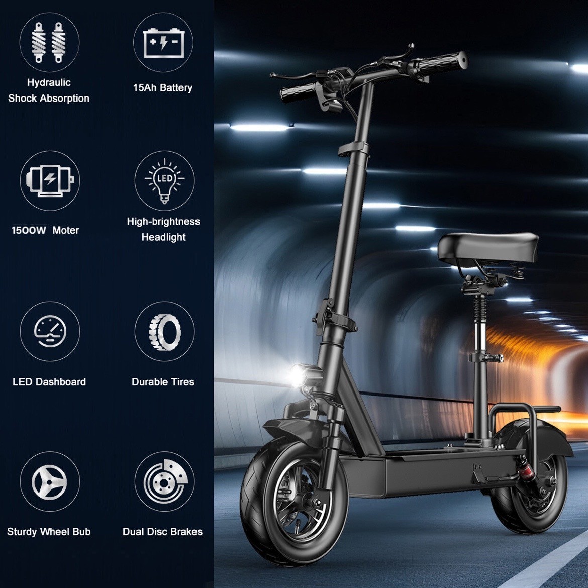 Conquer both city streets and rugged trails with this high-performance 1500W Electric Scooter. Designed for power, safety, and convenience, it features a durable 48V 15Ah battery, dual disc brakes, hydraulic shock absorbers, and a fast-folding frame — perfect for commuting or weekend adventures.