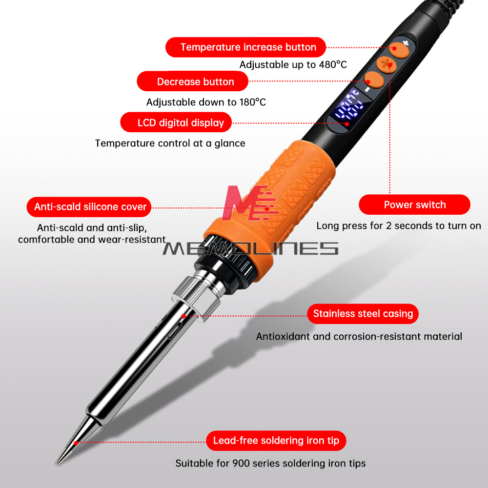 1.90W high power, can make the soldering iron in 6 seconds to quickly warm up, fast tin, tin smooth, built-in thermostat chip, heat stability, with anti-scald protective cover