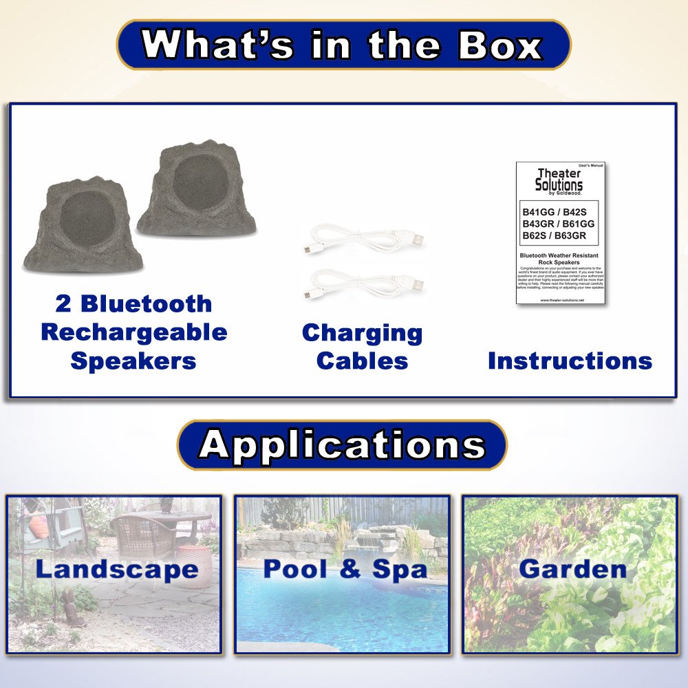 Rock any outdoor setting with beautiful sound and a boulder look! Our innovative speaker set has the look of real rocks that blend in with the natural landscape, and lets you play and enjoy all of your favorite music in any outdoor setting. Great for back yard entertainment, spa, pool or decks.