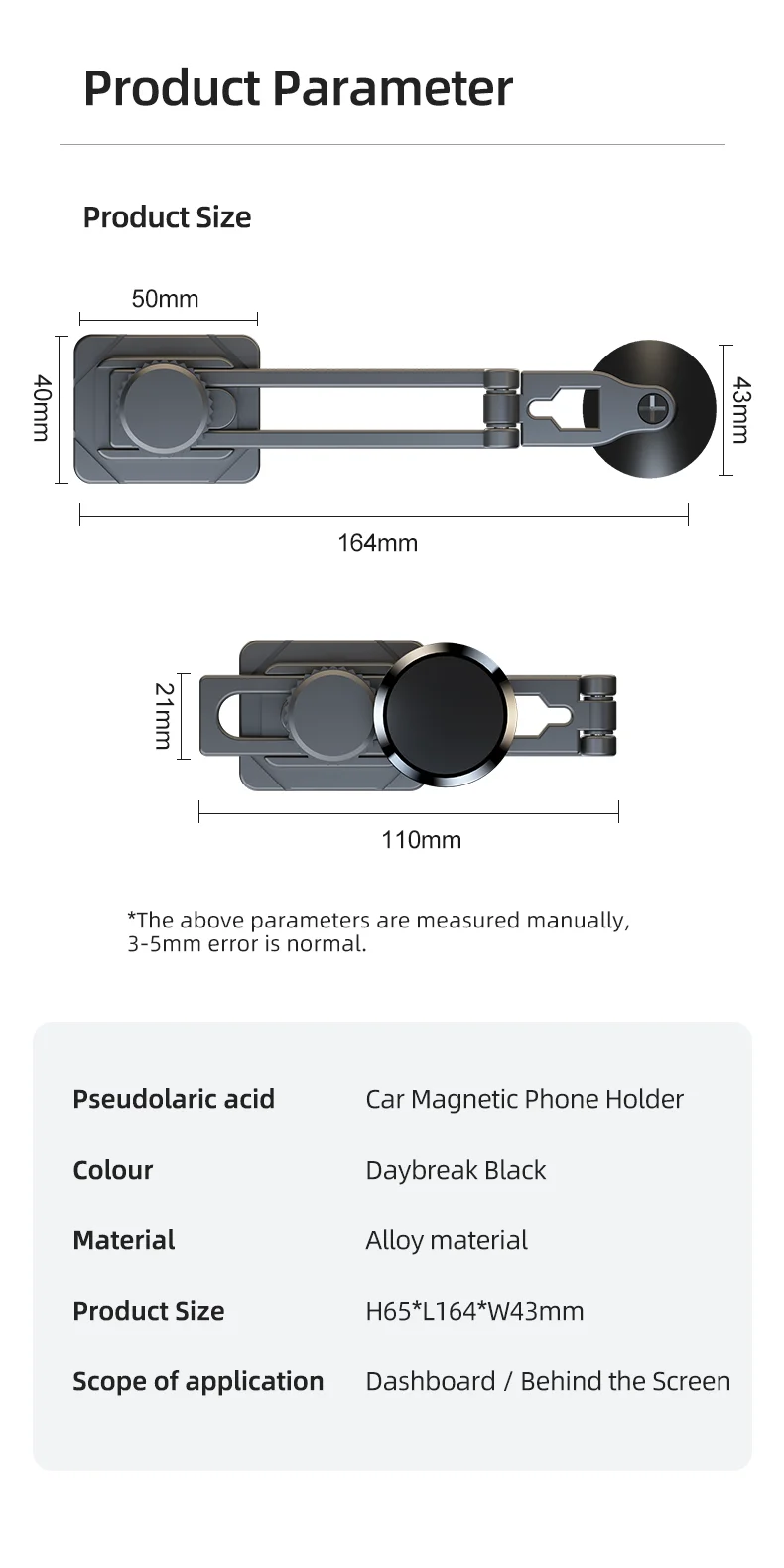 [ Easy to Install ] Simply sticky the base of the magnetic car phone holder to the cleansed surface, lock it in place and adjust the optimal location to your driving. The phone holder is wide compatible for cars, trucks, suv, pickup, taxis, and uber drivers. It's also a cell phone stand for desk, perfect for home,office.