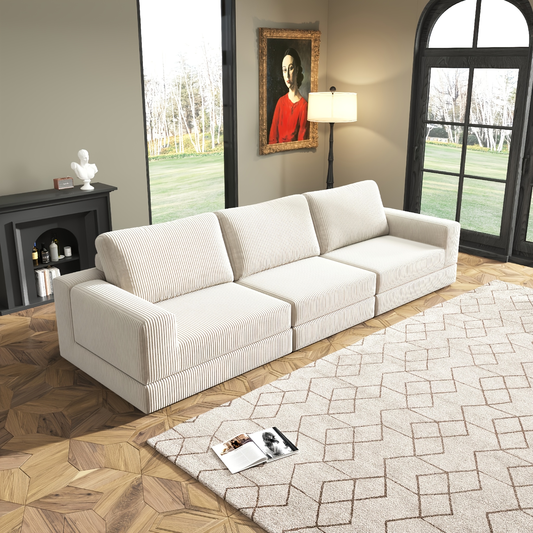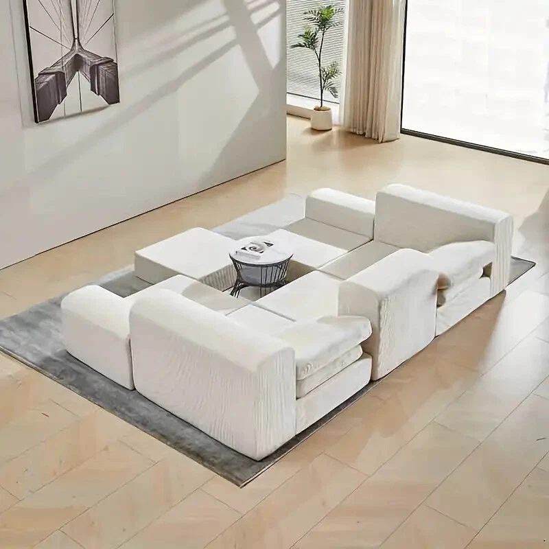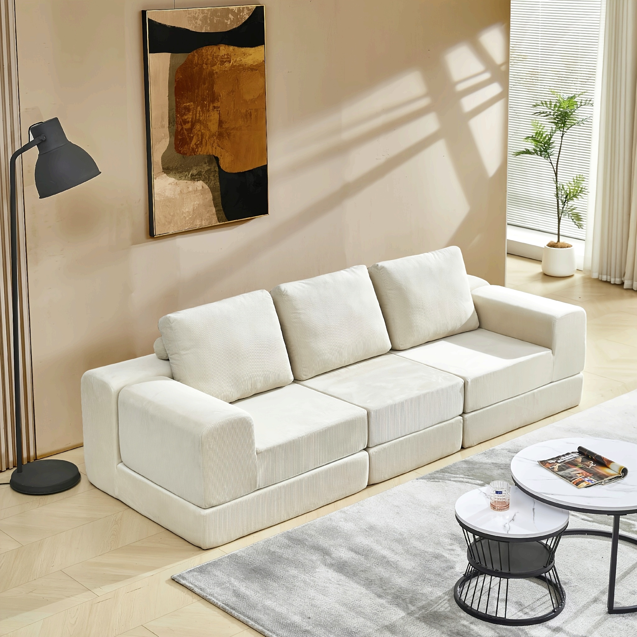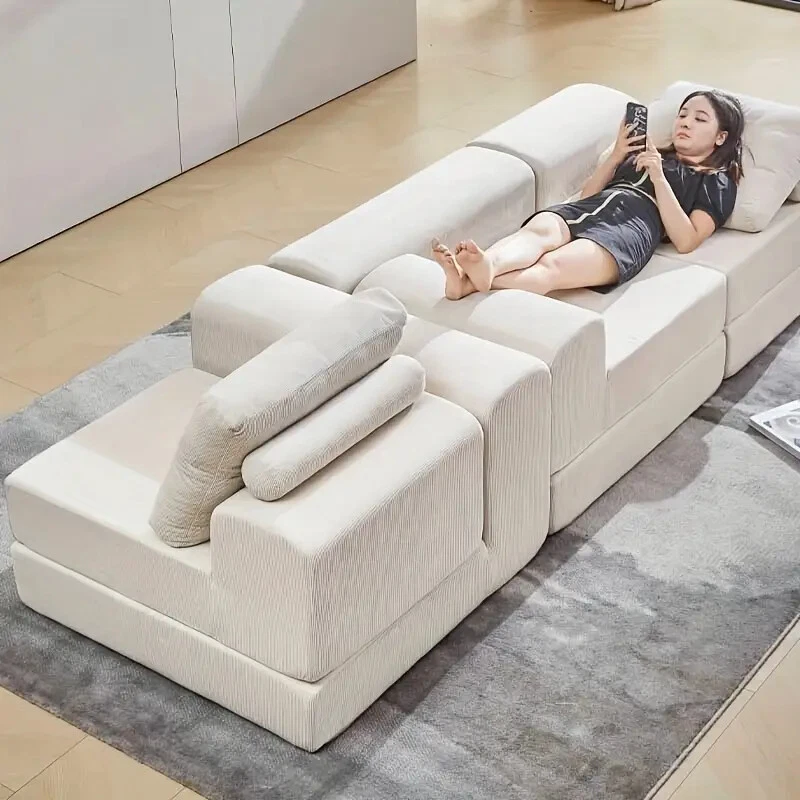 Nordic Modular 3-in-1 Sofa (White Corduroy + High-Resilience Foam)