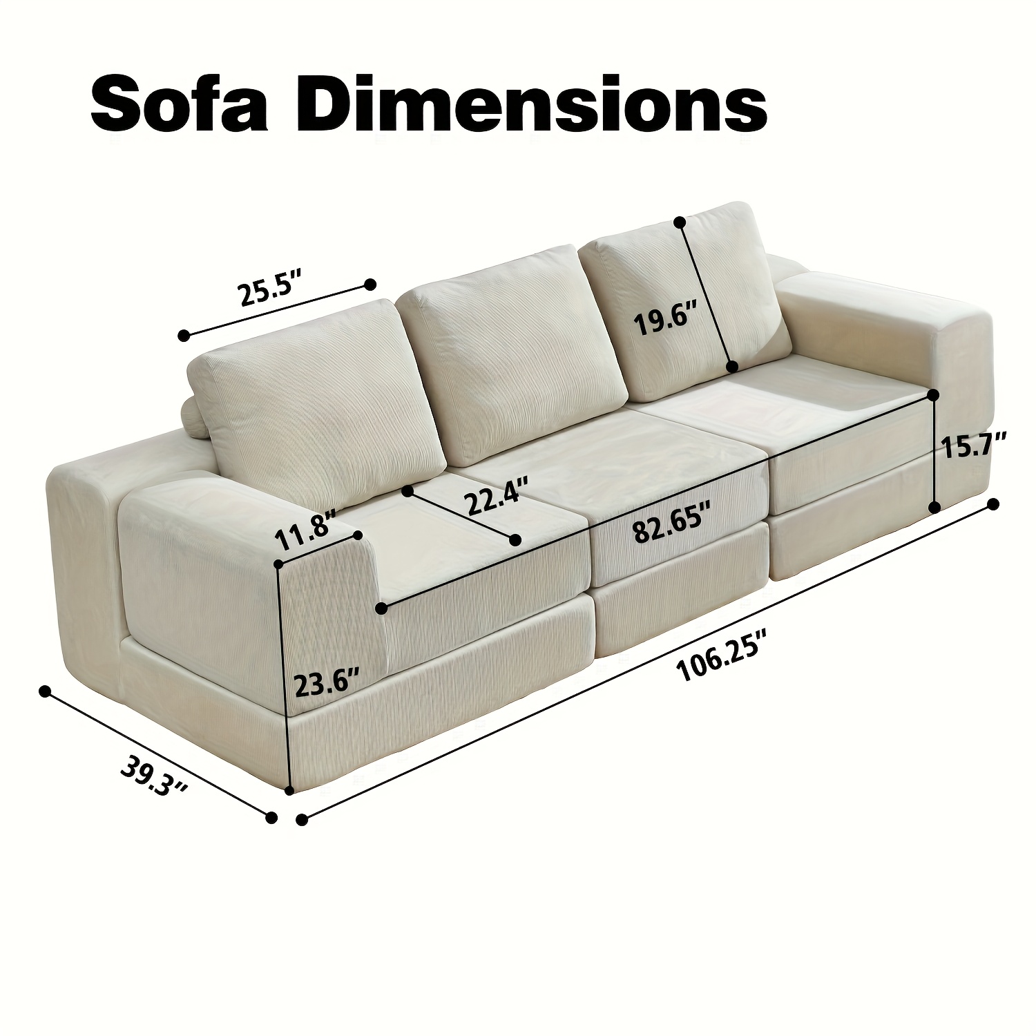 | Center | 27.5"L × 39.3"W × 15.7"H (Seat Height) | 70cm × 100cm × 40cm | Can be used as ottoman or extra seat |