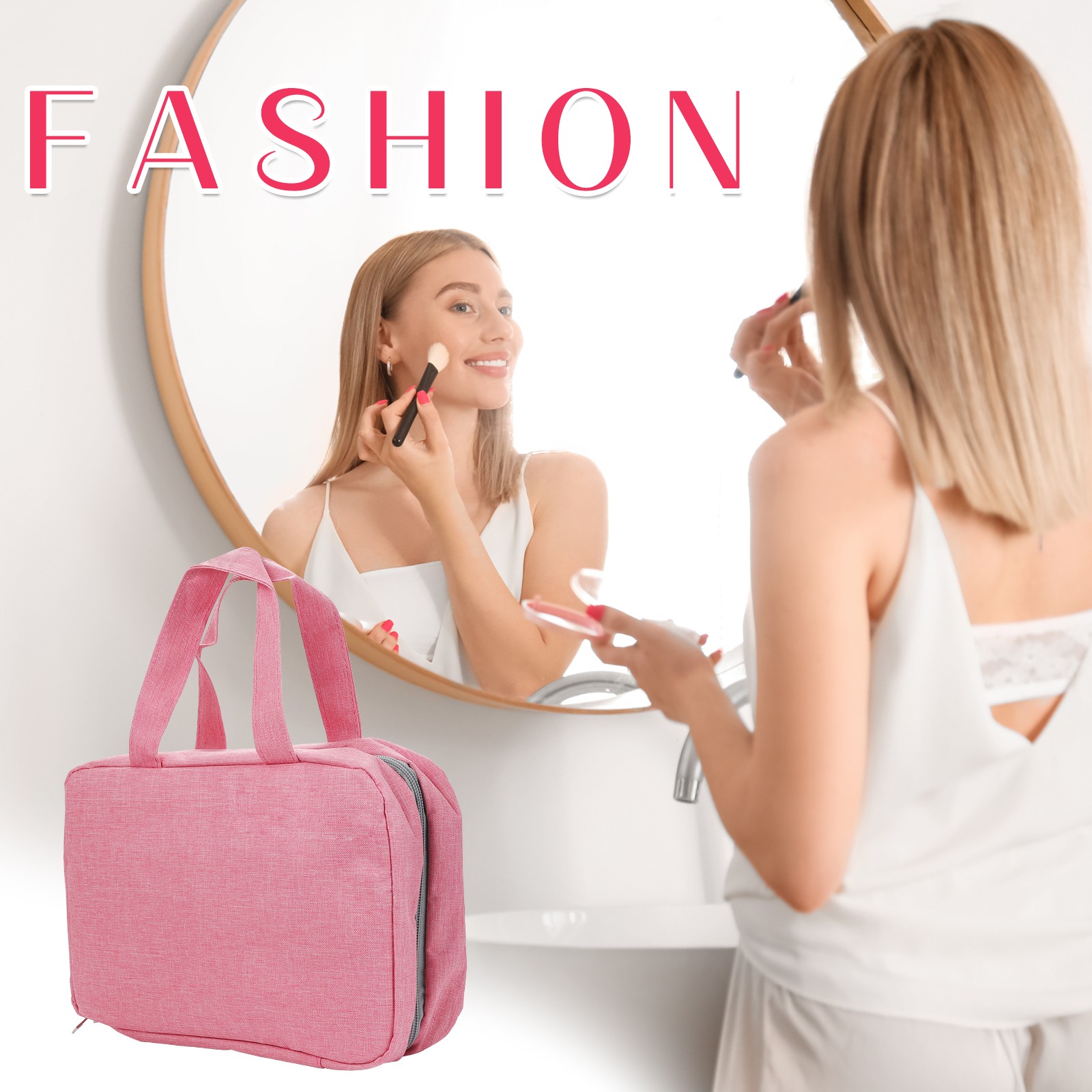 Features a separate waterproof compartment (with a sealing strip) for wet items like towels and toothbrushes, keeping them completely isolated from skincare products. The interior is divided for organized management. - Space-Saving Hanging Design