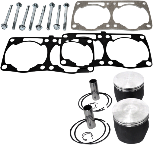 • Includes pistons, rings, circlips, wristpins, cylinder bolts, cylinder spacer, longer alignment pins, and two base gaskets