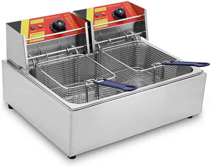 12L Countertop Electric Fryer 5000W Commercial Kitchen Fryer Double Tank Design