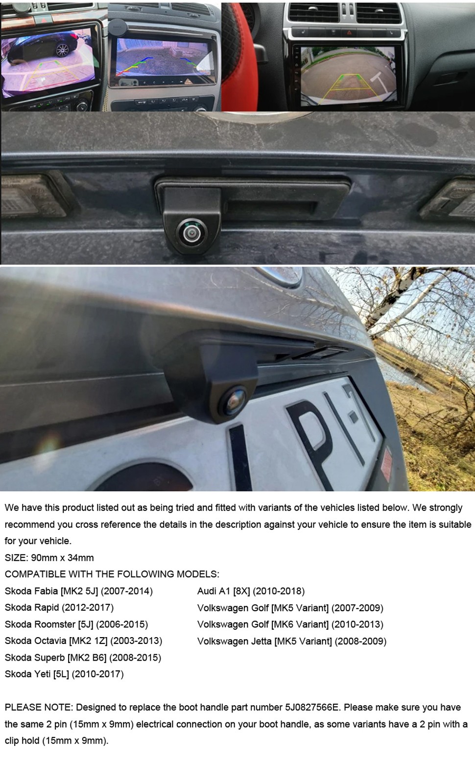 BITTE HINWEIS: Entworfen, um den Stiefelgriff Teilenummer 5J0827566E zu ersetzen. Bitte stellen Sie sicher, dass Sie den gleichen 2-poligen (15mm x 9mm) elektrischen Anschluss an Ihrem Stiefelgriff haben, da einige Varianten einen 2-poligen mit einem Clip-Halt (15mm x 9mm) haben.