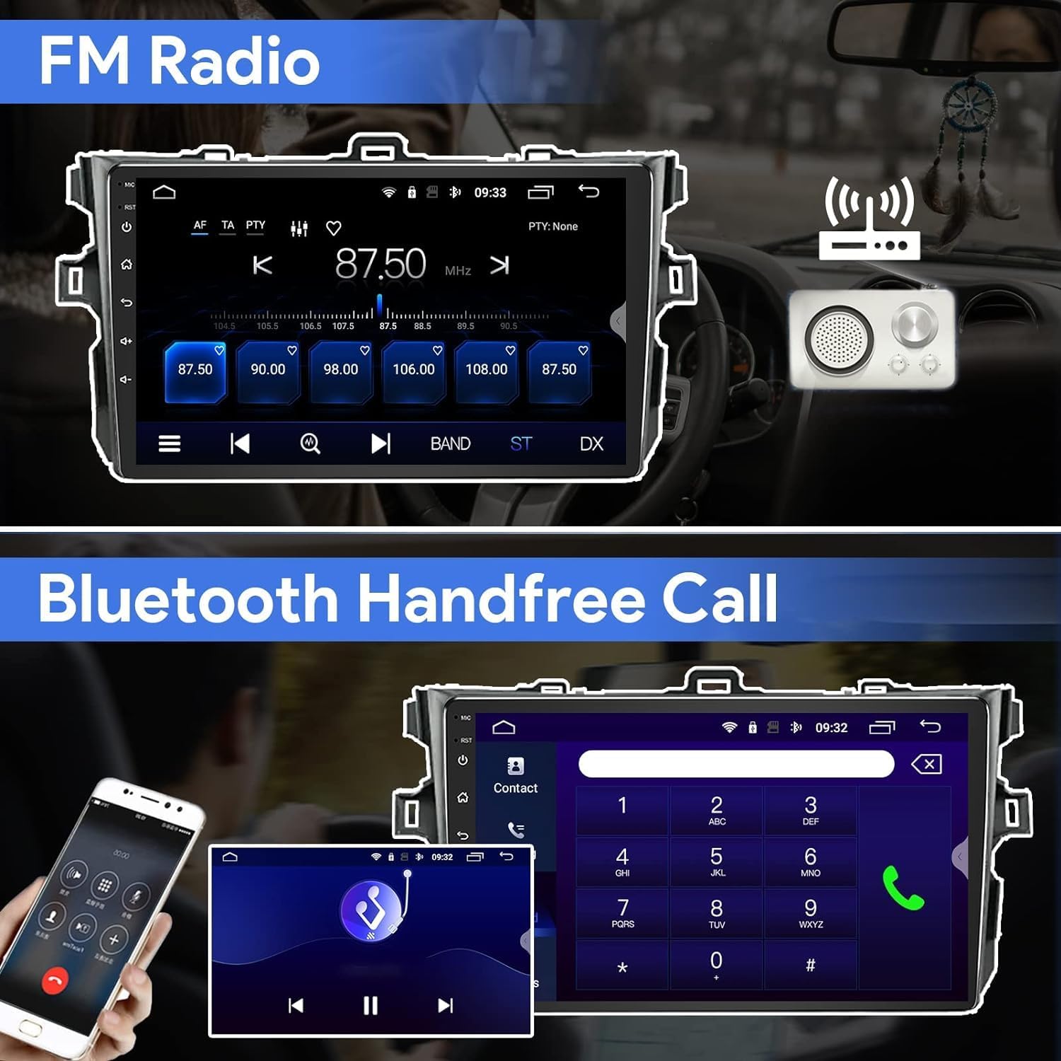 Product Features: Wireless & Wired Carplay: You can choose wired connection or wireless connection to carplay, connect to Apple mobile phone, access mobile phone address book, mail, notification, map navigation, music, video and other information, and realize voice control. Wireless & Wired Android auto: Built-in Wireless Android auto car system can closely integrate the user's Android phone and player, and realize navigation, make calls, send and receive information, listen to music and other operations through data cable connection;