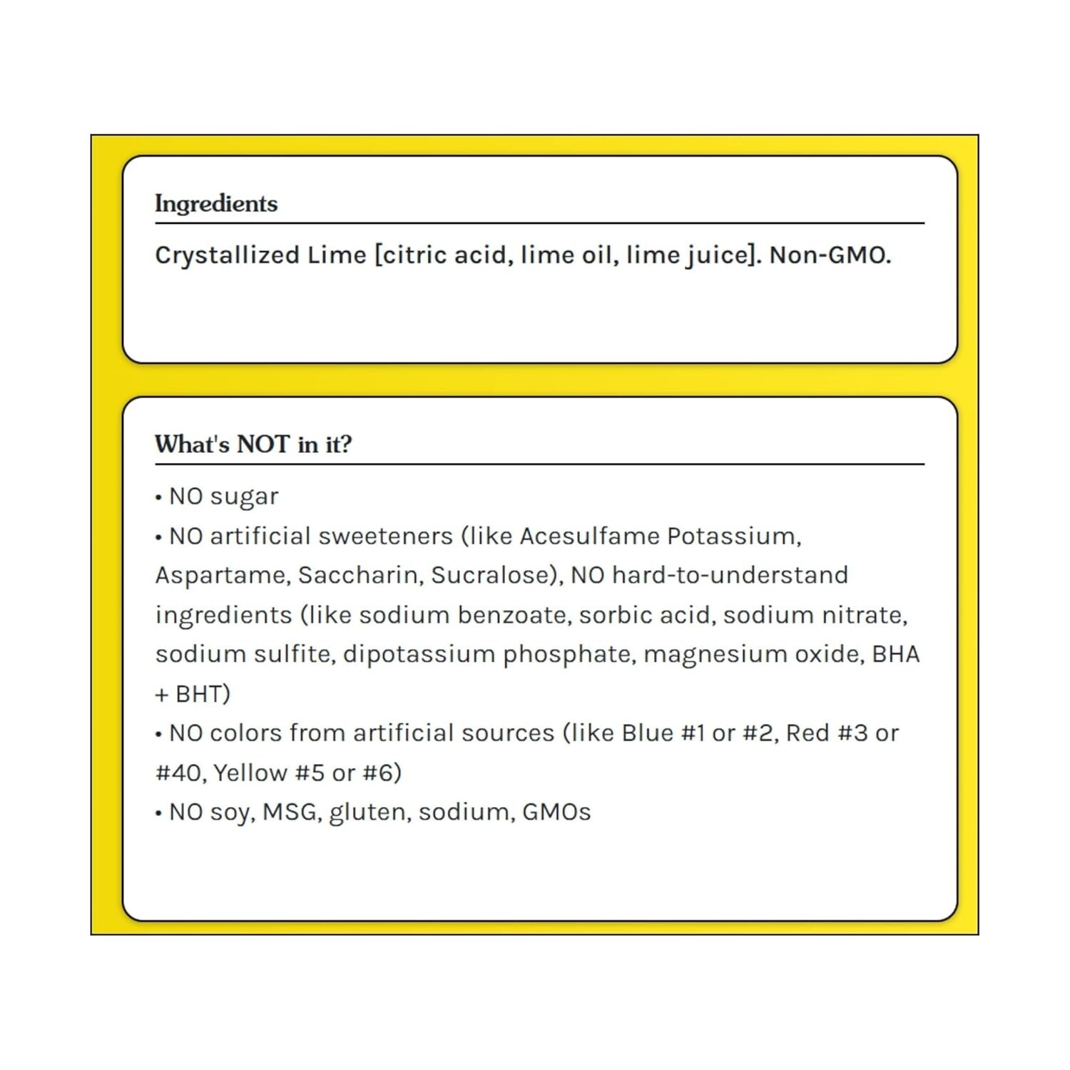 Each packet equals the taste of 1 lime wedge; perfect for precise flavor measurements.