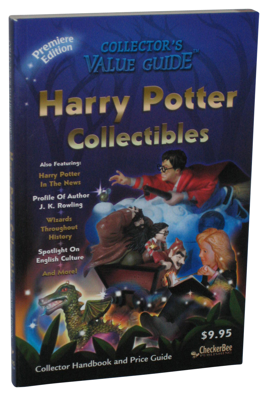 Lists prices and values of Harry Potter merchandise and collectibles, including figurines, international books, clothing, and forthcoming items.