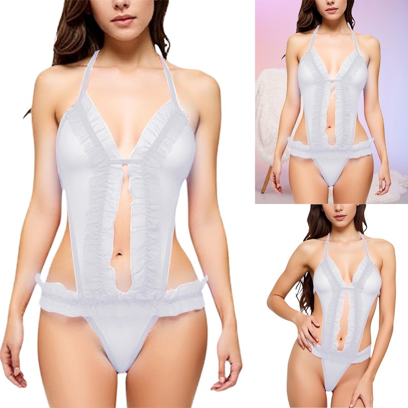 Womens See-through Mesh Crotchless Bodysuit Hollow Out Halter Backless Leotard Lingerie Nightwear.