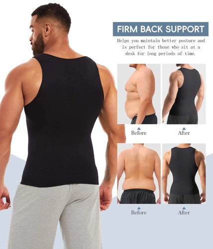 • High quality and Breathable Nylon & Spandex tightly knitted together flattening your chest and stomach. Ergonomic slimming and tight X-Shape back support designed to shape the body, help your back and overall posture, Gynecomastia or "man boobs" compression shirt helps in Losing weight buring fat workout, The Invisible under vest compresses nicely but isn't so tight that it's unbearable.do not need to such in you gut aways.