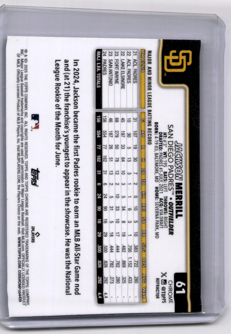 2025 Topps Chrome Refractor Rookie Cup Jackson Merrill San Diego Padres #61
