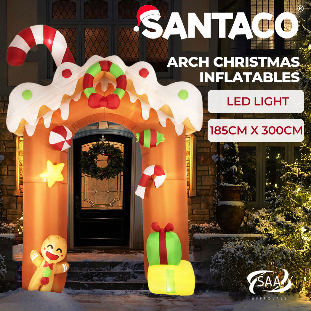 Santaco Christmas Inflatable Arch Way 3m Lighted 18 LED Candy Outdoor Decoration