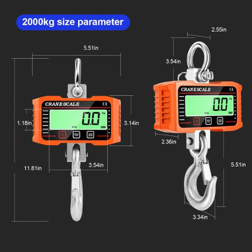 Digital LCD Display 2000kg Crance Scale Portable Electronic Heavy Duty Weight Hook Crane Industrial Grade Weighing Meter Tool【Premium Material】: The housing of the product is made of thickened aluminum, which is impact-resistant, solid, and reliable, and can significantly extend its service lifespan. It is also rust and corrosion-resistant, making it suitable for use in various harsh environments. The reinforced stainless steel hookring is resistant to falls and impacts. The 45# steel hook with plastics-sprayed surface is treated with high-temperature quenching, is safer and more reliable.