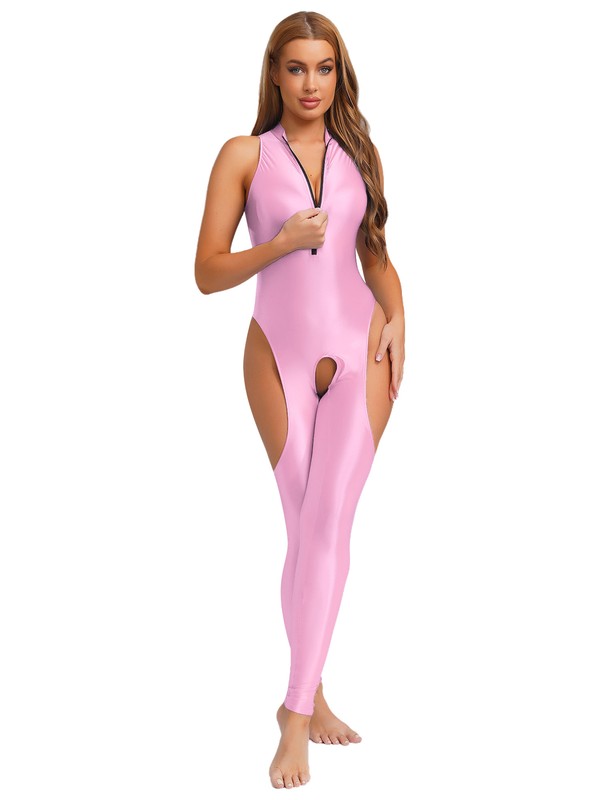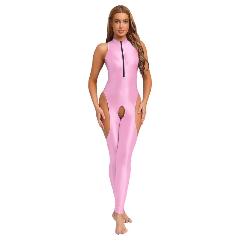 The open-crotch and thigh cut-out details are daring and fashionable, showcasing a bold and confident style that stands out.